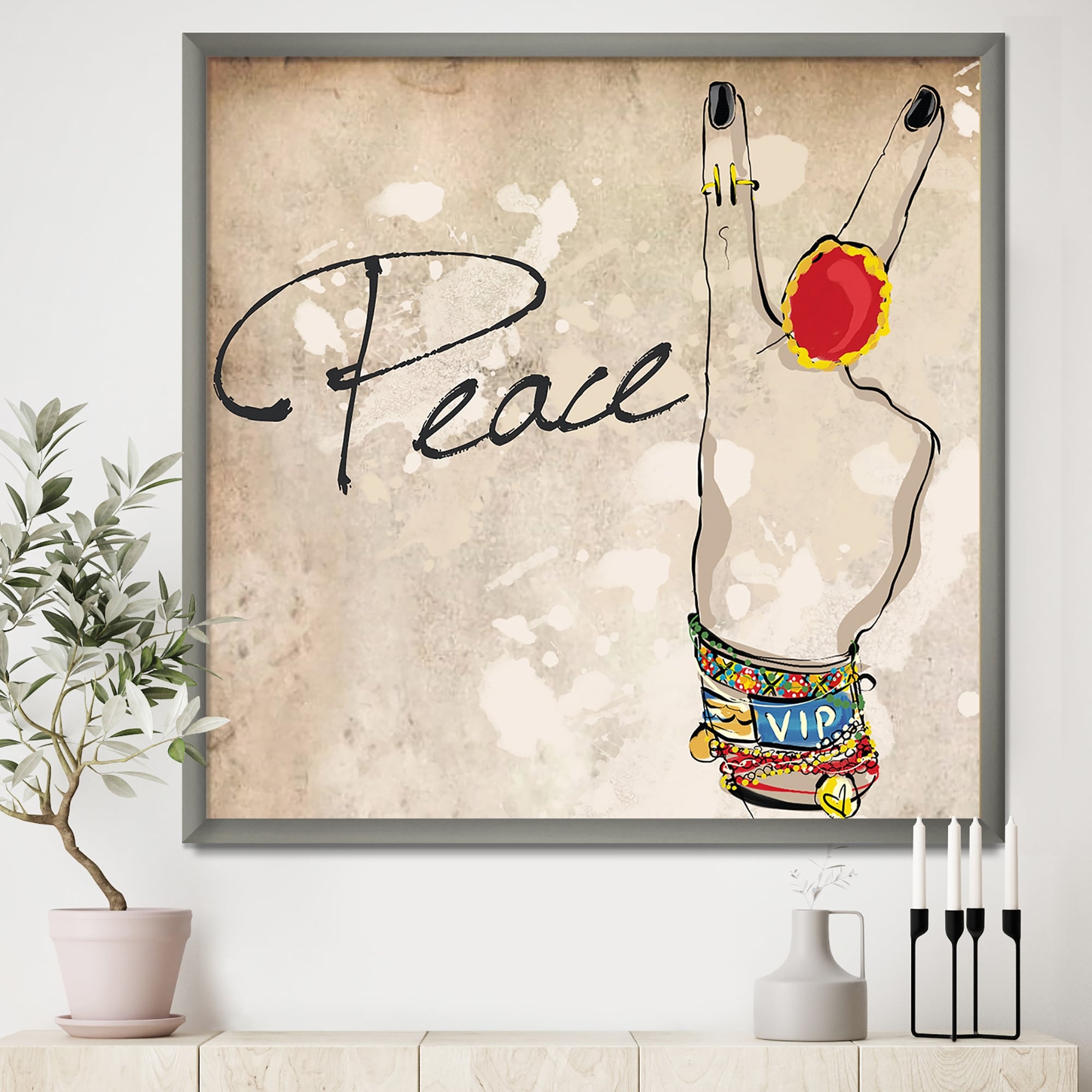 Designart "Gypsy Hippy Hand Peace" Cottage Framed Art Print