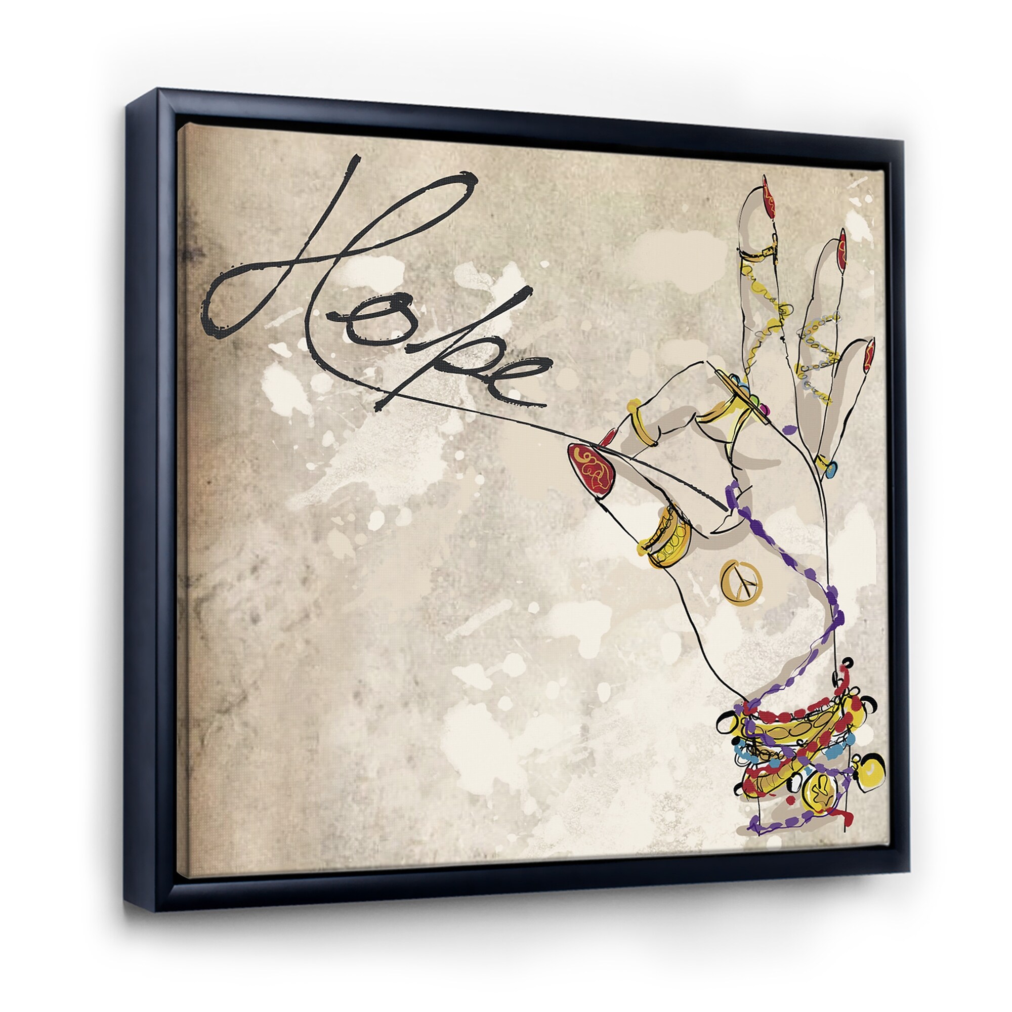 Designart "Gypsy Hippy Hand Hope" Cottage Premium Framed Canvas Wall Art