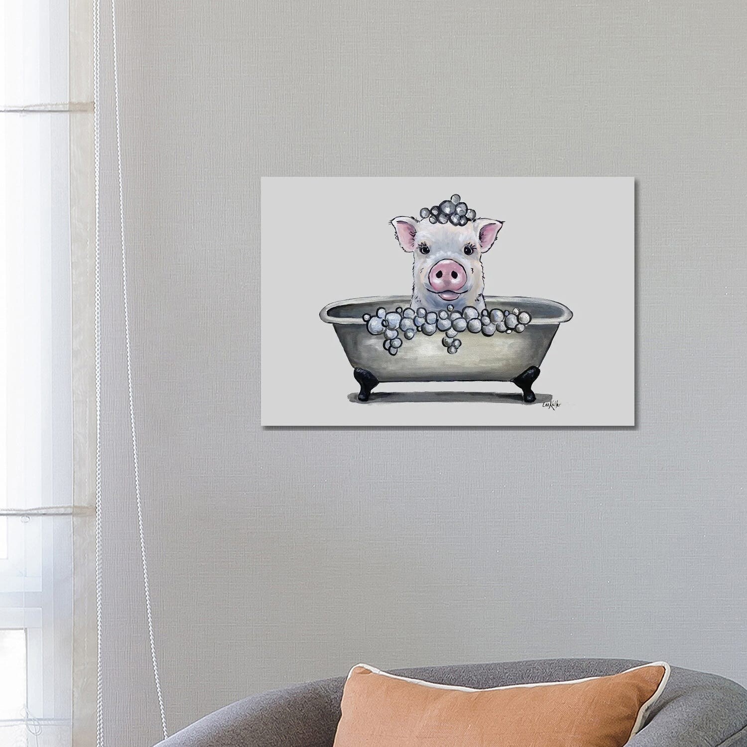 iCanvas "Pig In A Tub, Bathtub Pig Bathroom Art 'Delbert'" by Hippie Hound Studios Canvas Print