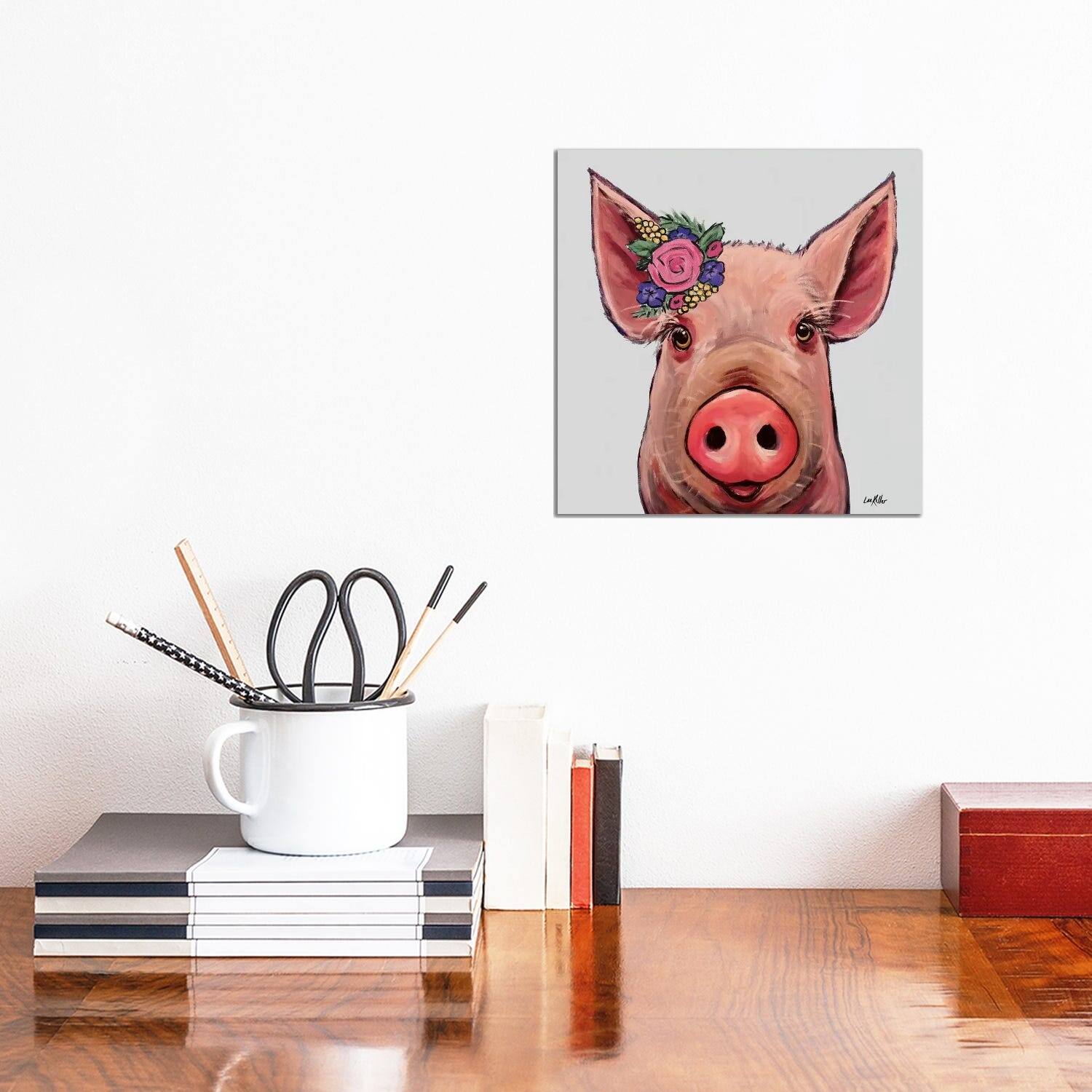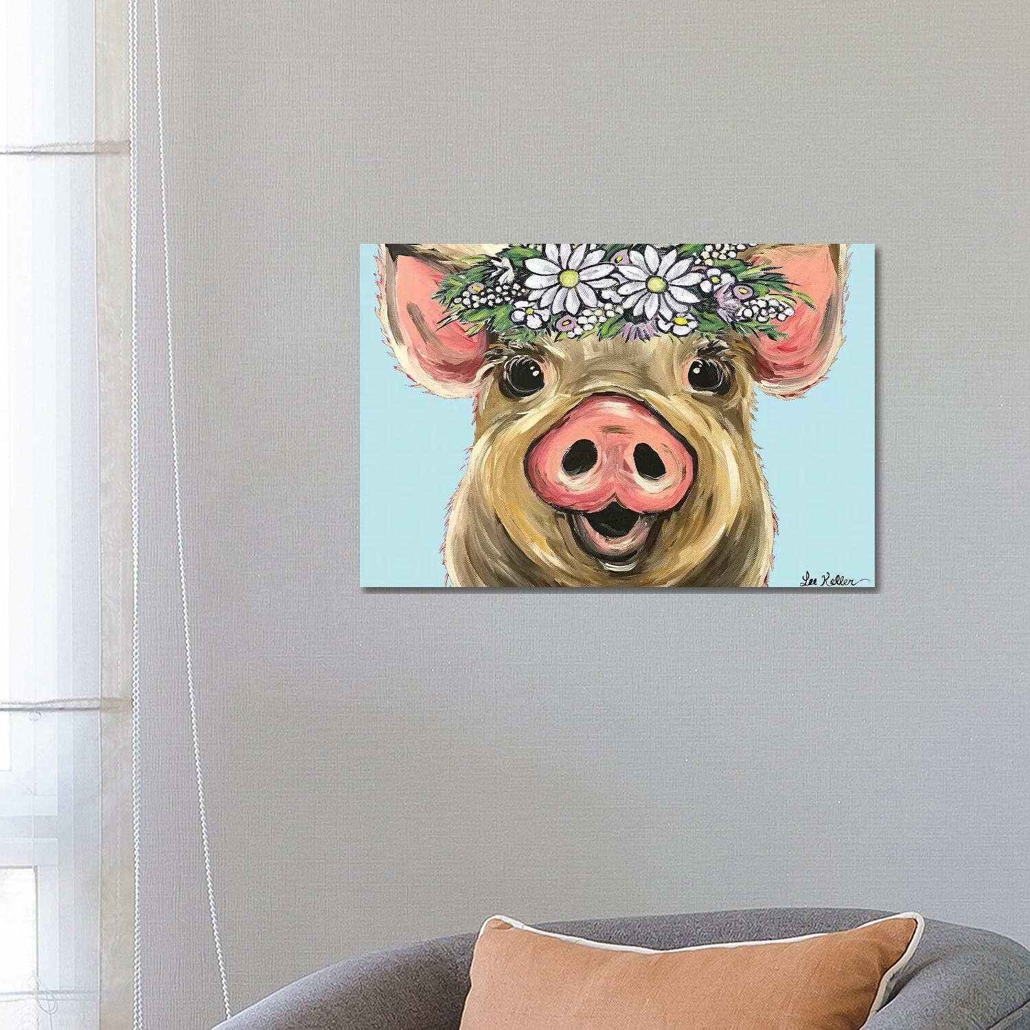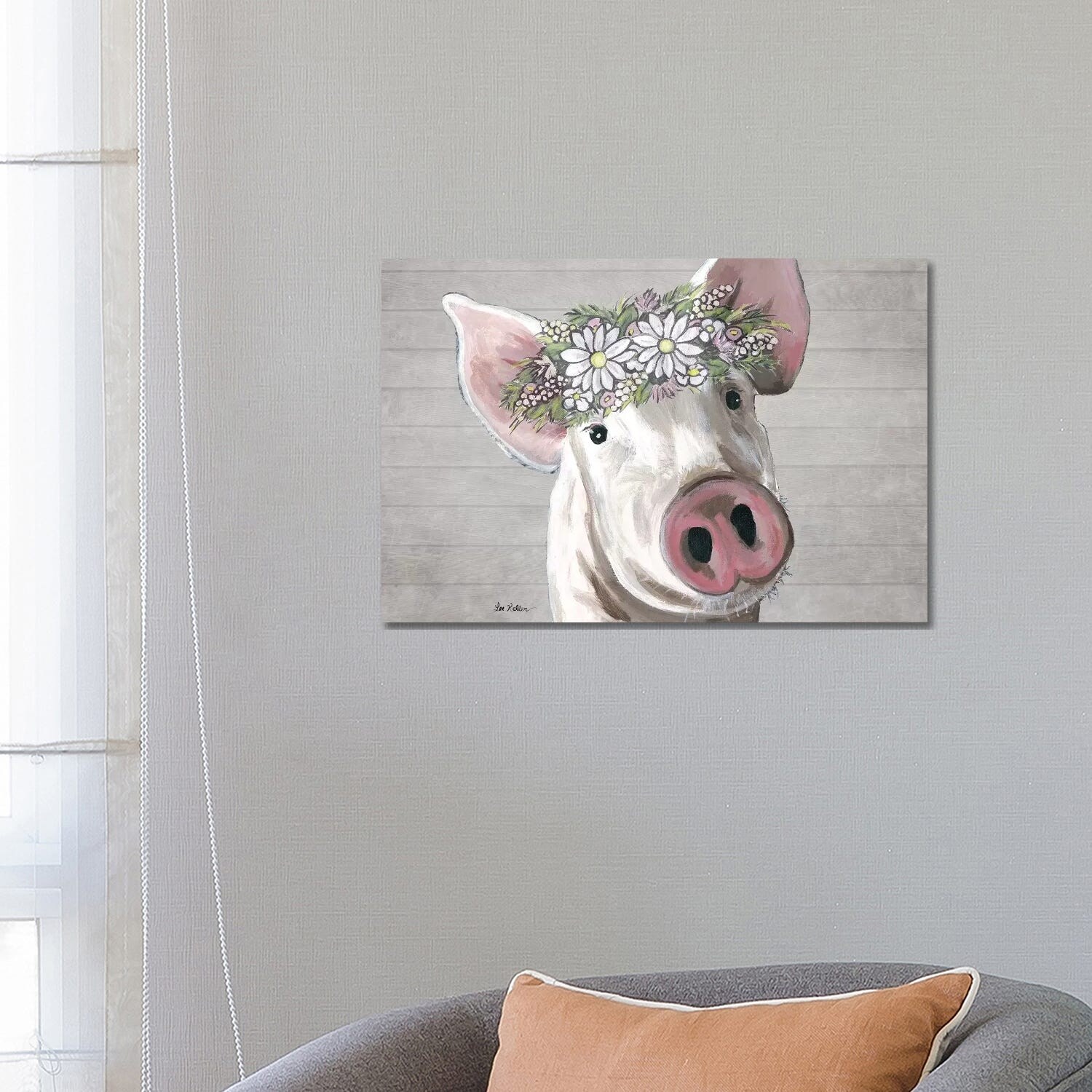 iCanvas "Posey The Pig With Daisies Farmhouse Style" by Hippie Hound Studios Canvas Print