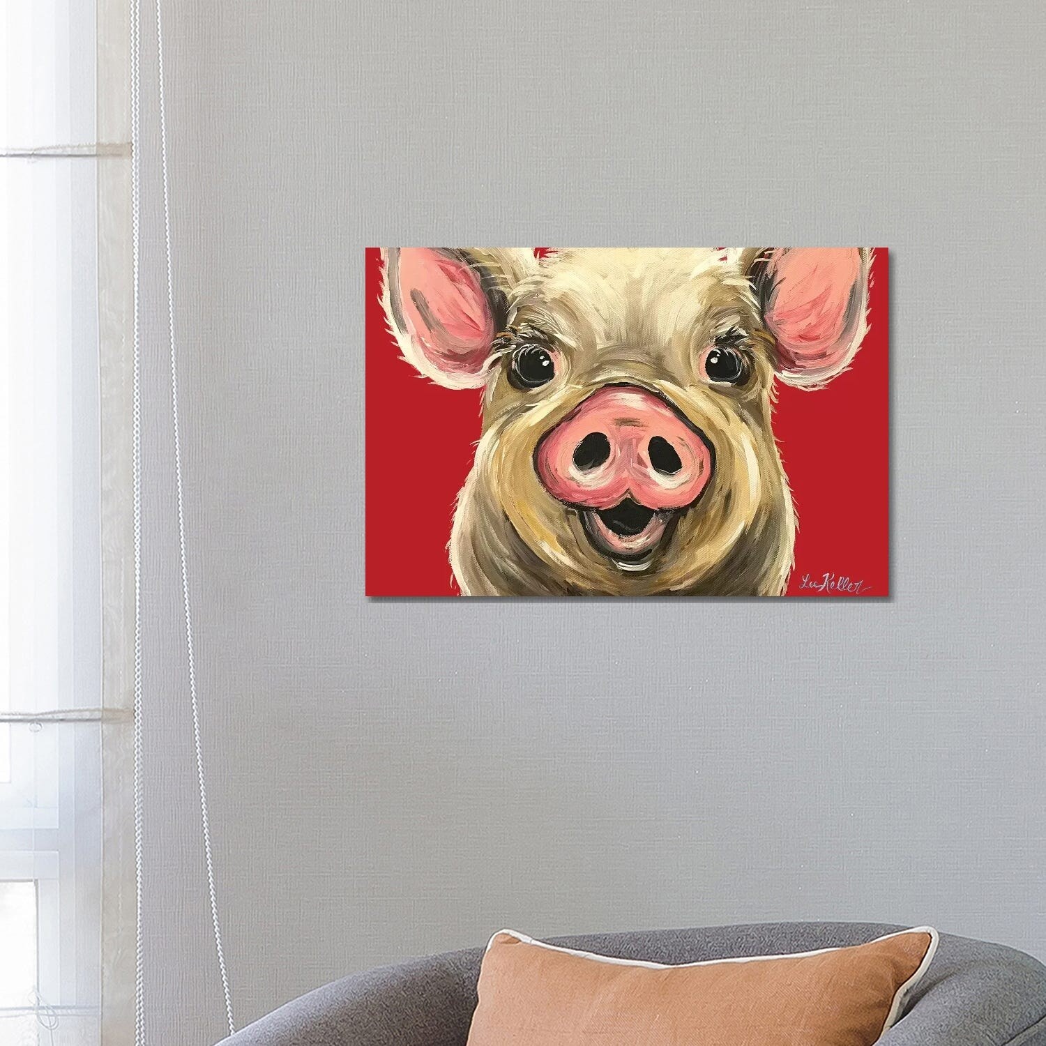 iCanvas "Pig Rosie on Red" by Hippie Hound Studios Canvas Print