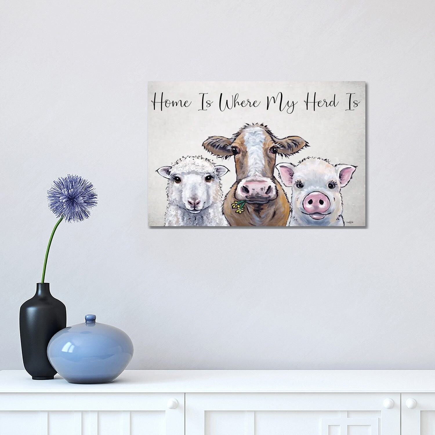 iCanvas "Farm Animal Sign Sheep, Cow, Pig, Home Is Where My Herd Is" by Hippie Hound Studios Canvas Print