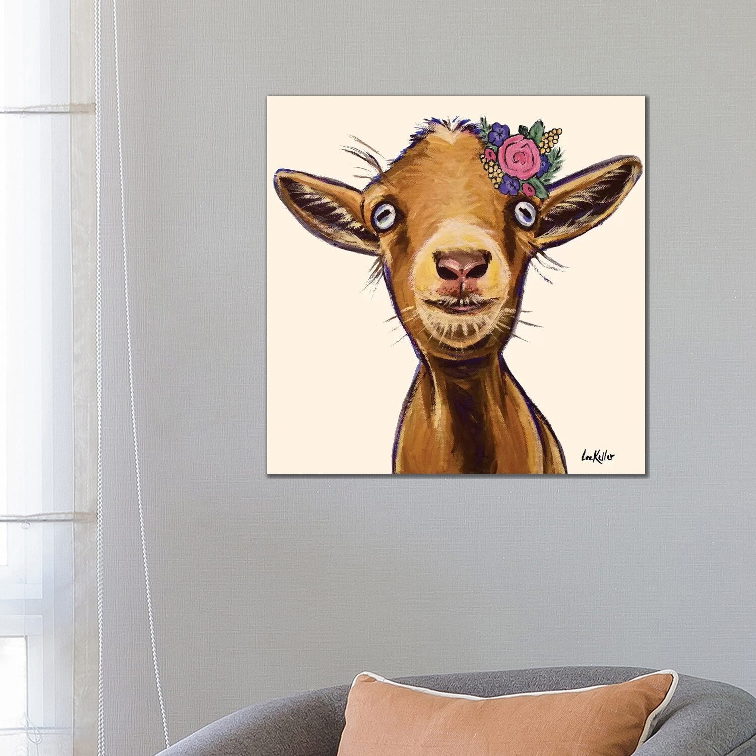 iCanvas "Poundcake The Goat With Flowers" by Hippie Hound Studios Canvas Print