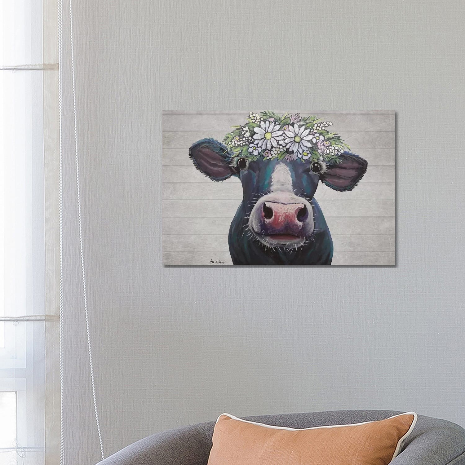 iCanvas "Clara The Cow With Daisies Farmhouse Style" by Hippie Hound Studios Canvas Print