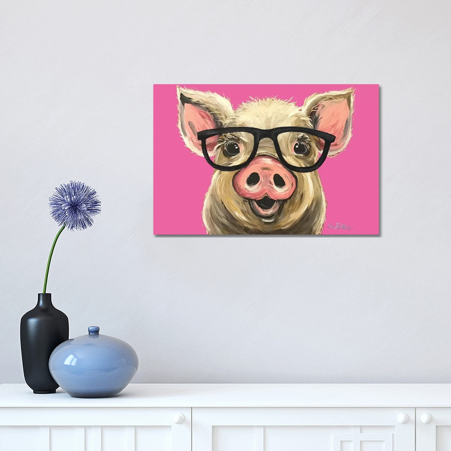 iCanvas "Rosey The Pig With Glasses" by Hippie Hound Studios Canvas Print