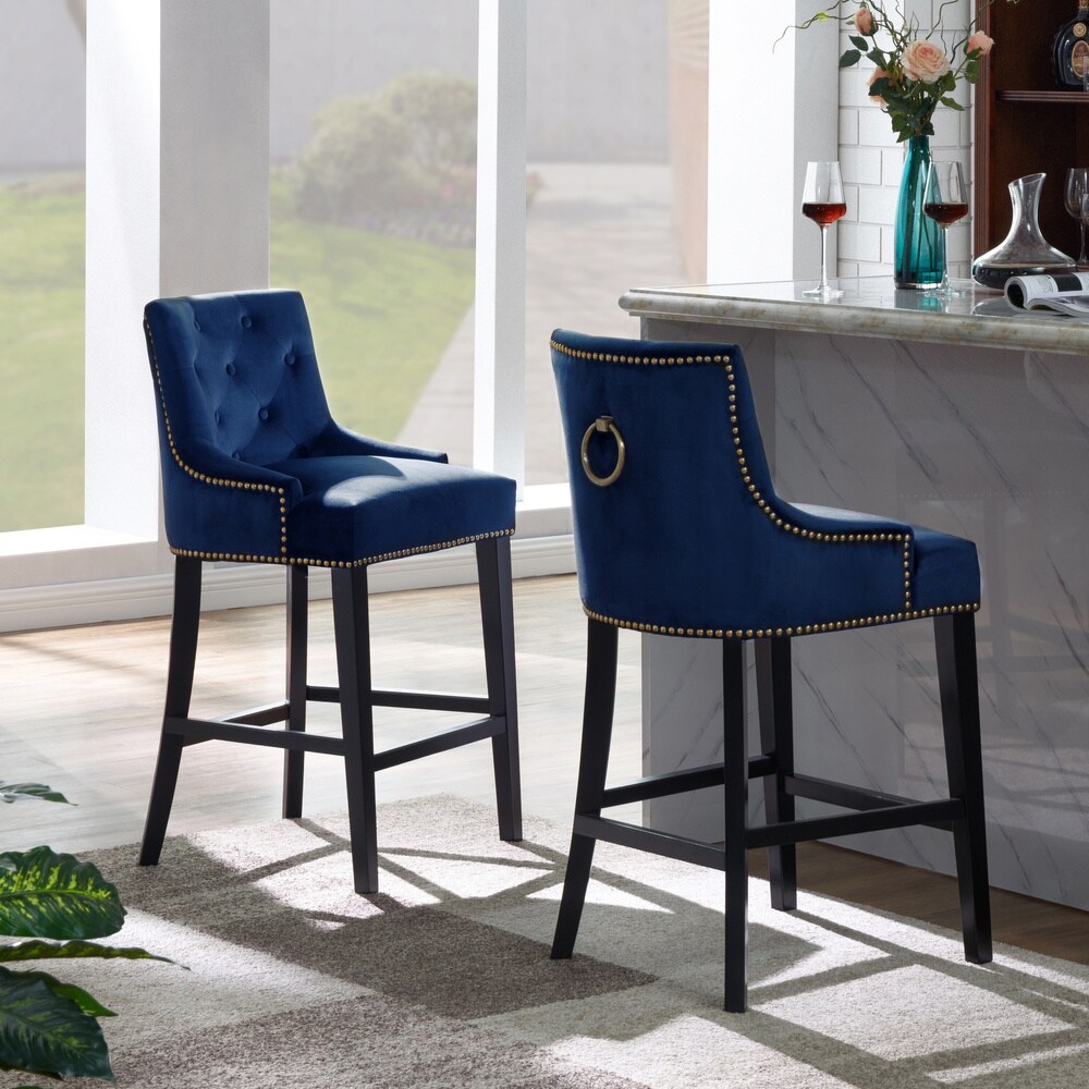 Gracewood Hollow Anandghan Button-tufted Velvet-upholstered Counter Stool