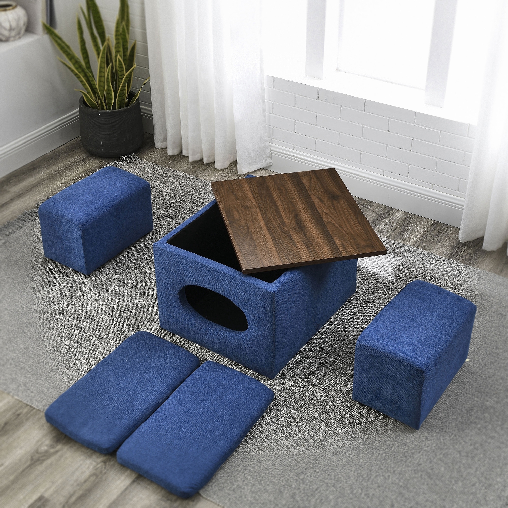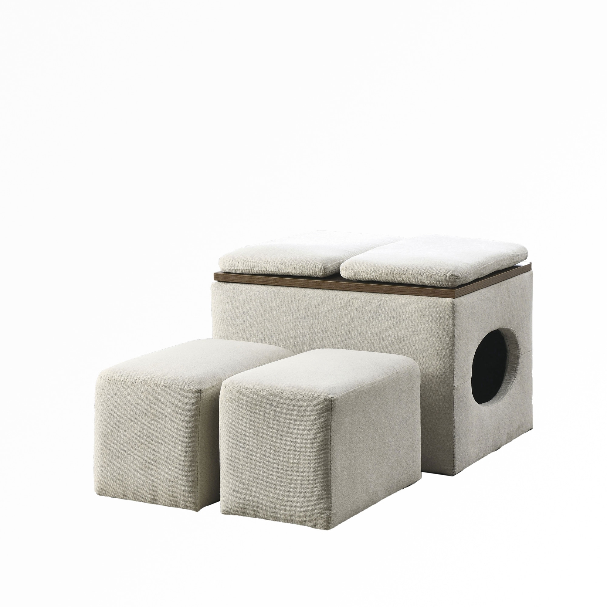 Hollow Storage Ottoman Upholstered Coffee Table Footstool Easy Storage