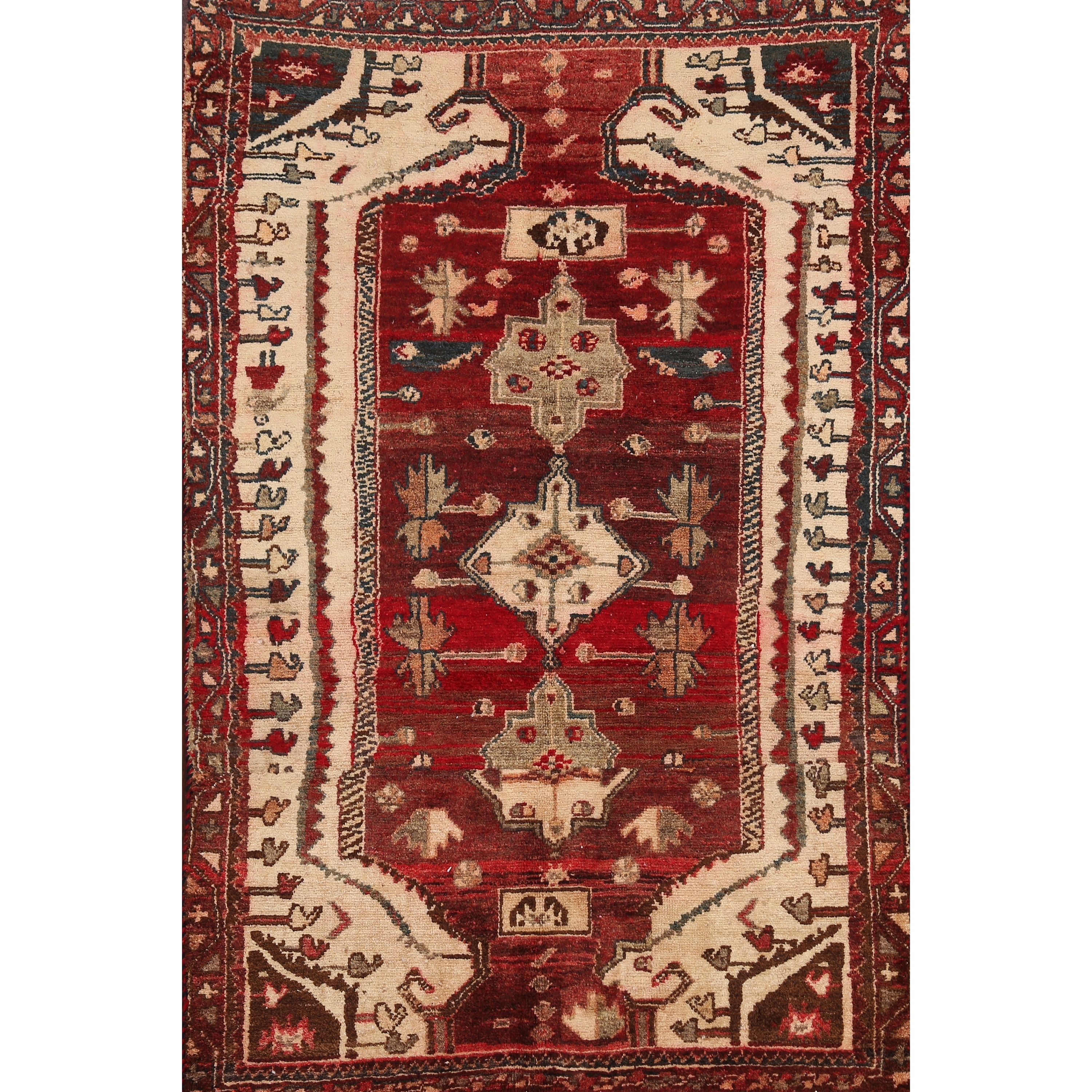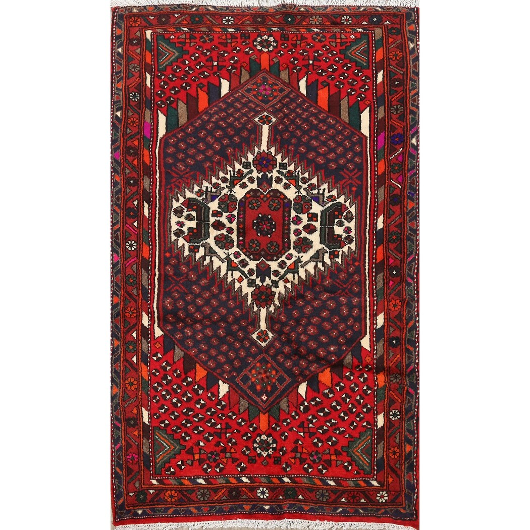 Traditional Geometric Hamedan Persian Area Rug Handmade Wool Carpet - 3'1" x 5'0"