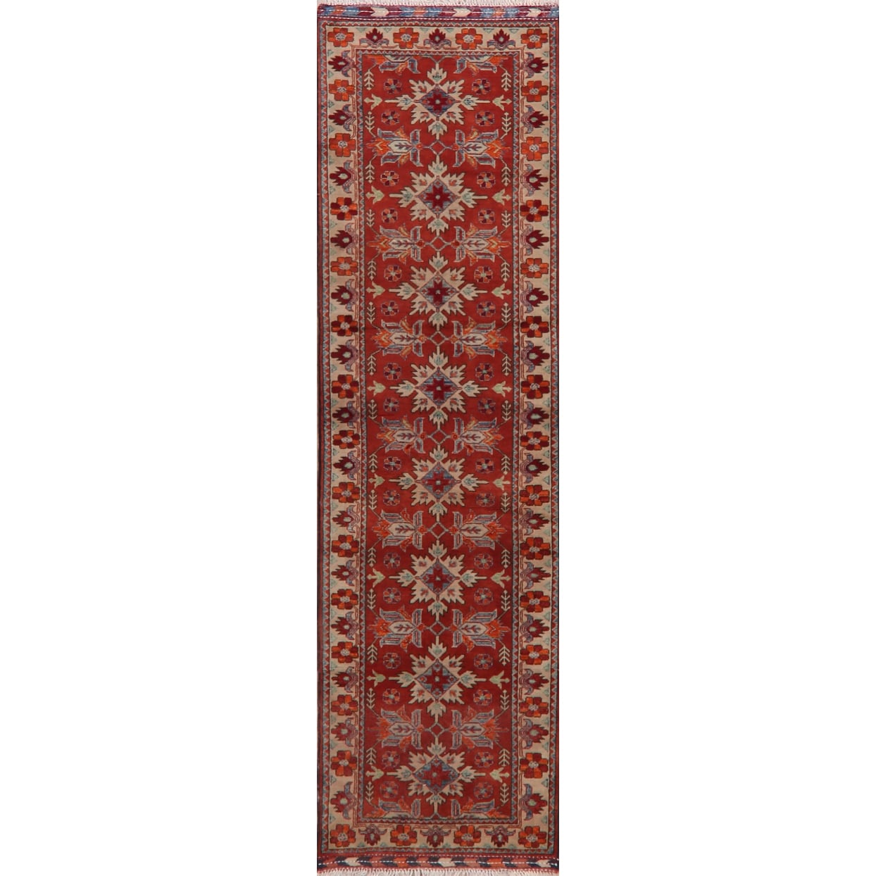 Geometric Red Super Kazak Oriental Runner Rug Hand-knotted Wool Carpet - 2'9" x 9'9"