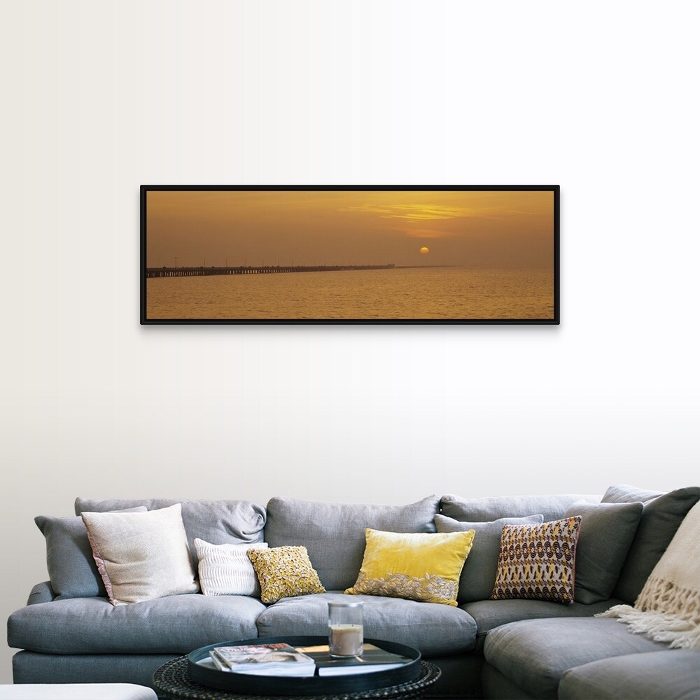 "Pier at sunset, Berkeley, California" Black Float Frame Canvas Art