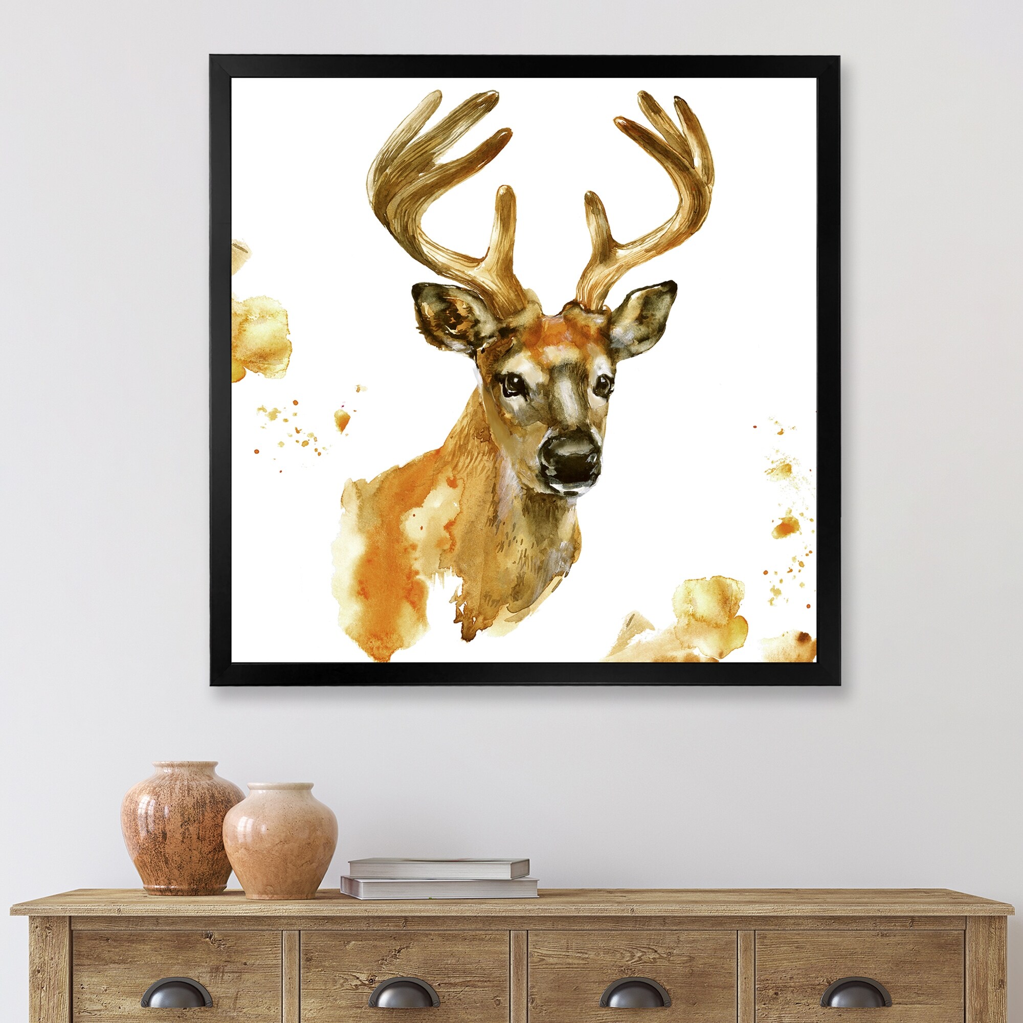 Designart "Portrait of Deer With Big Horns" Farmhouse Framed Art Print