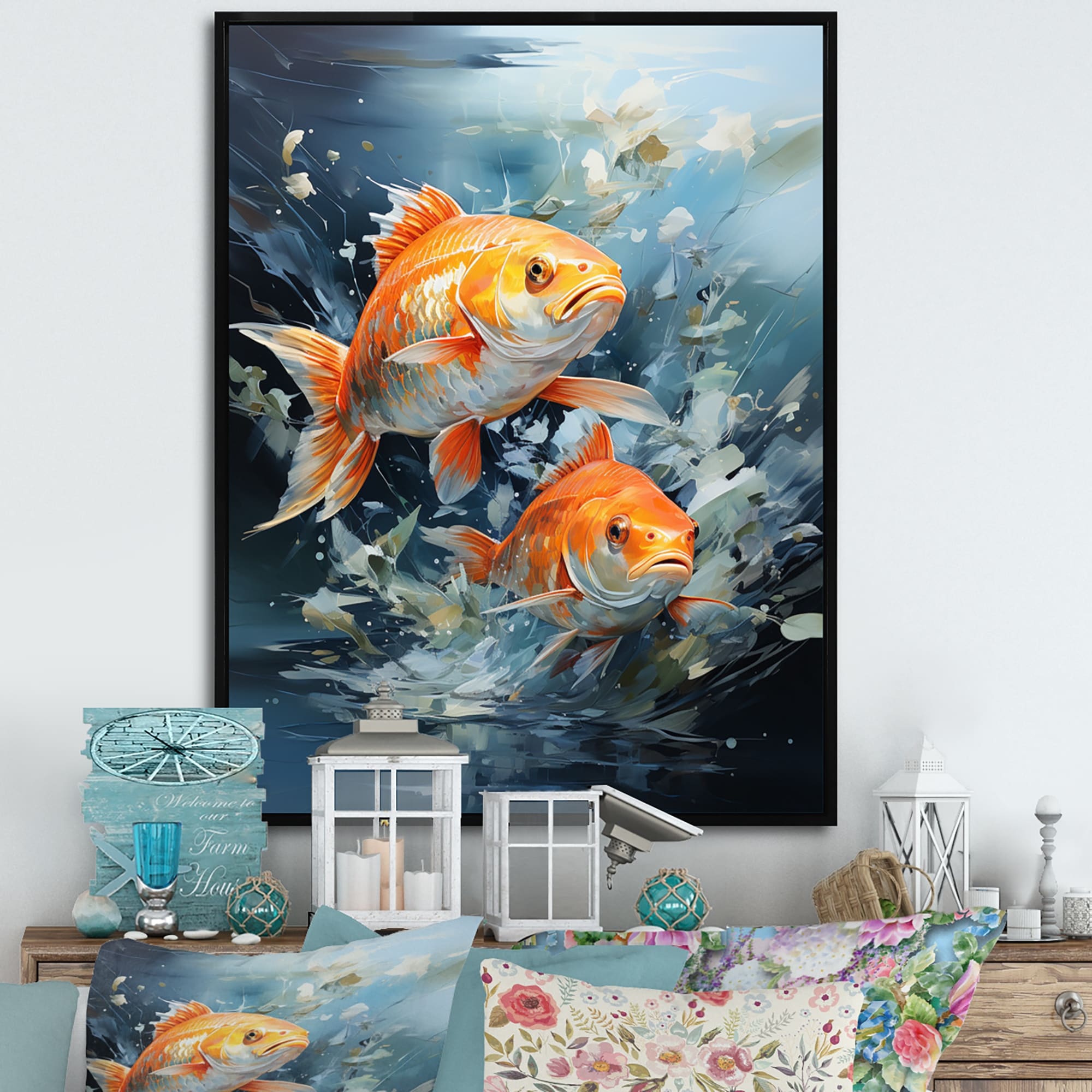 Designart "Fishing Carp Collage I" Hunting & Fishing Framed Canvas Print