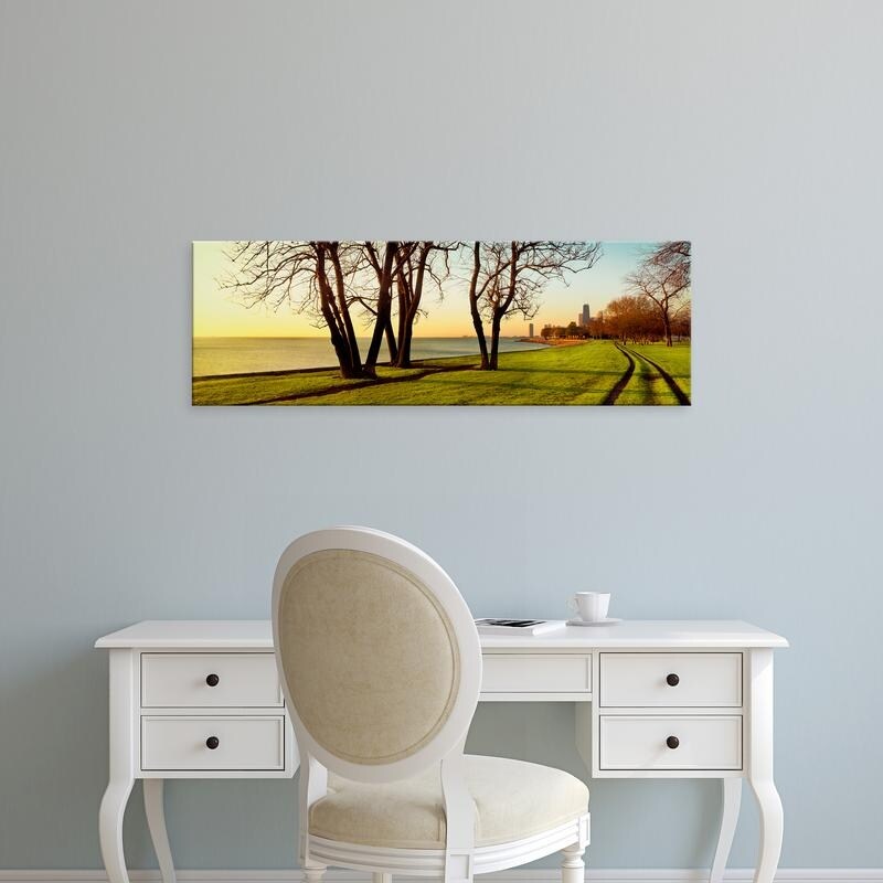 Easy Art Prints Panoramic Image 'Trees in a park with lake, Lincoln Park, Lake Michigan, Chicago, Illinois' Canvas Art