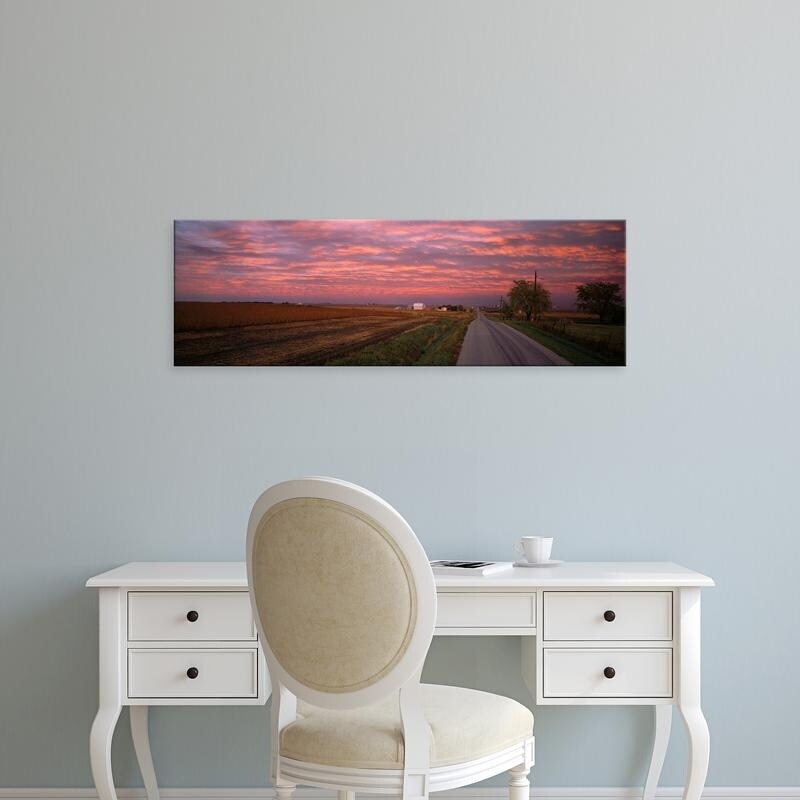 Easy Art Prints Panoramic Images's 'Road passing through fields, Illinois Route 64, Illinois, USA' Premium Canvas Art