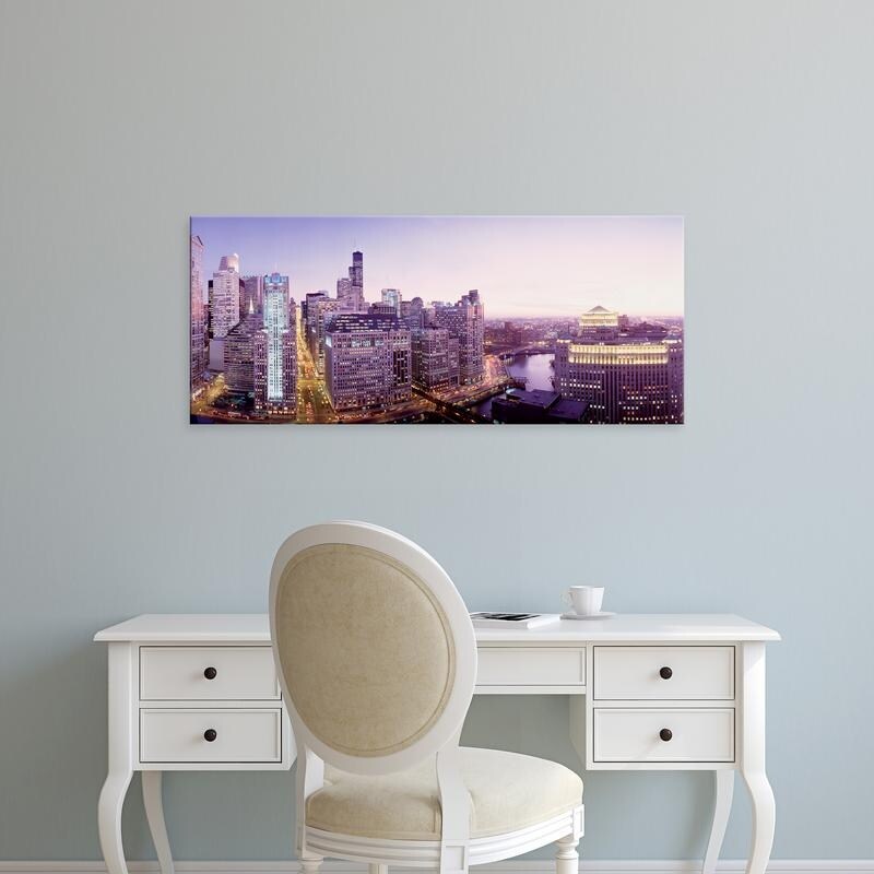 Easy Art Prints Panoramic Images's 'Skyscrapers at Dusk, Chicago, Illinois, USA' Premium Canvas Art