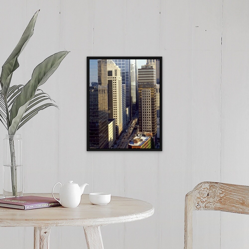 "Skyscrapers in a city, Wacker Drive, Chicago, Cook County, Illinois" Black Float Frame Canvas Art