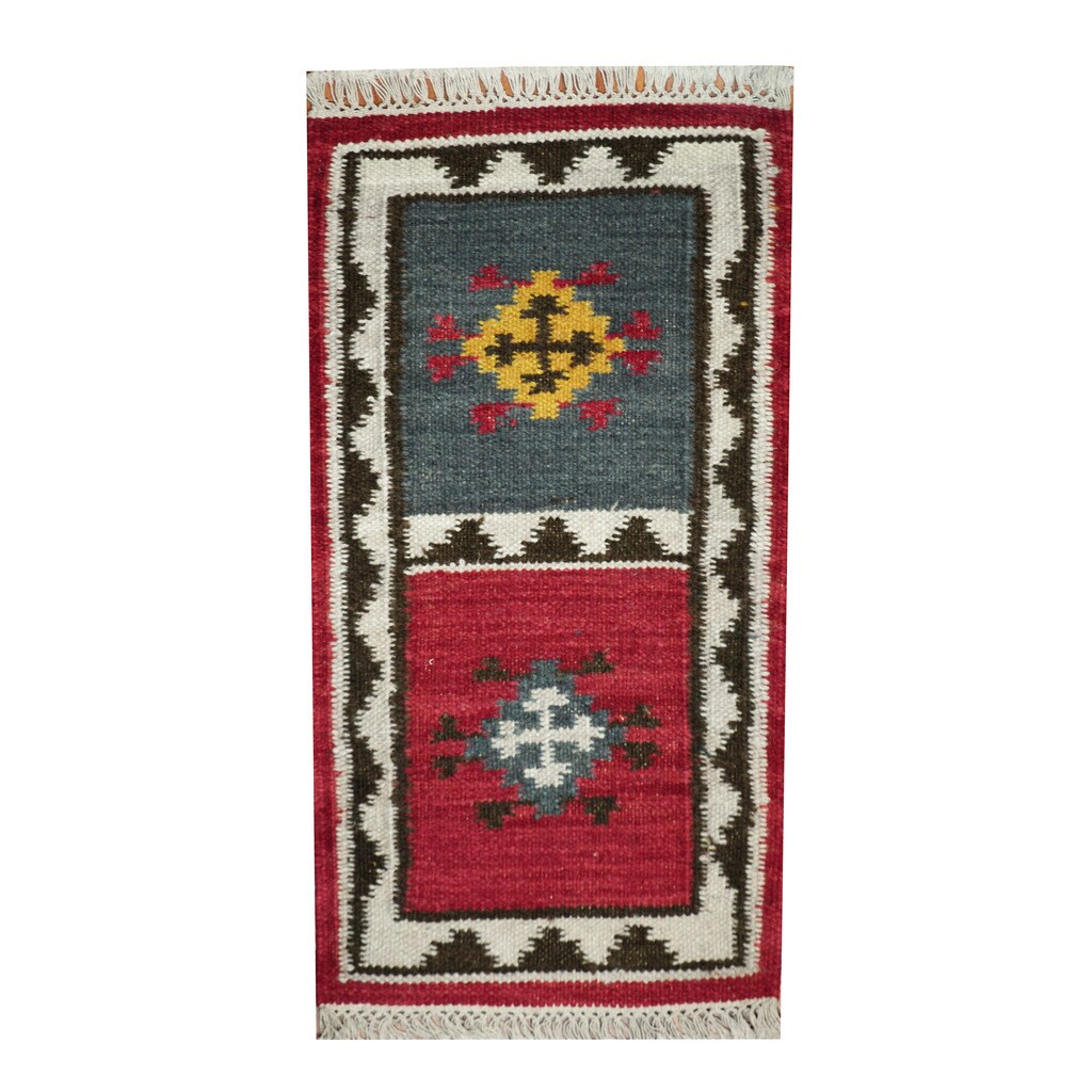 Handmade Vegetable Dye Wool Kilim (India) - 1'8" x 3'3"