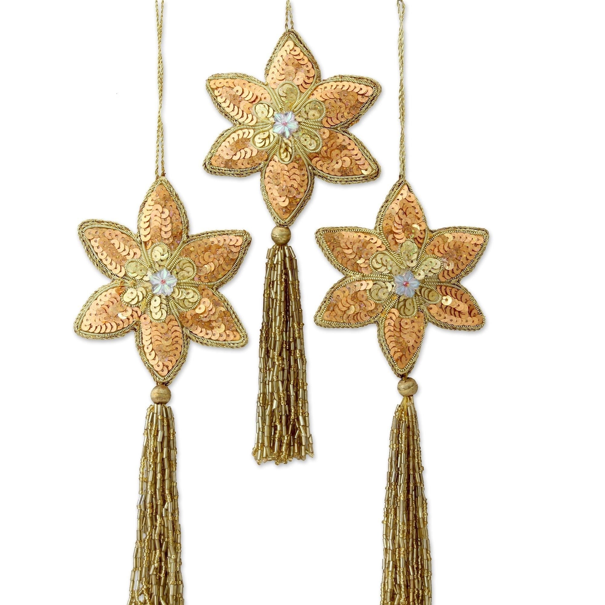 Handmade Golden Beaded Ornaments Set of 3 (India)