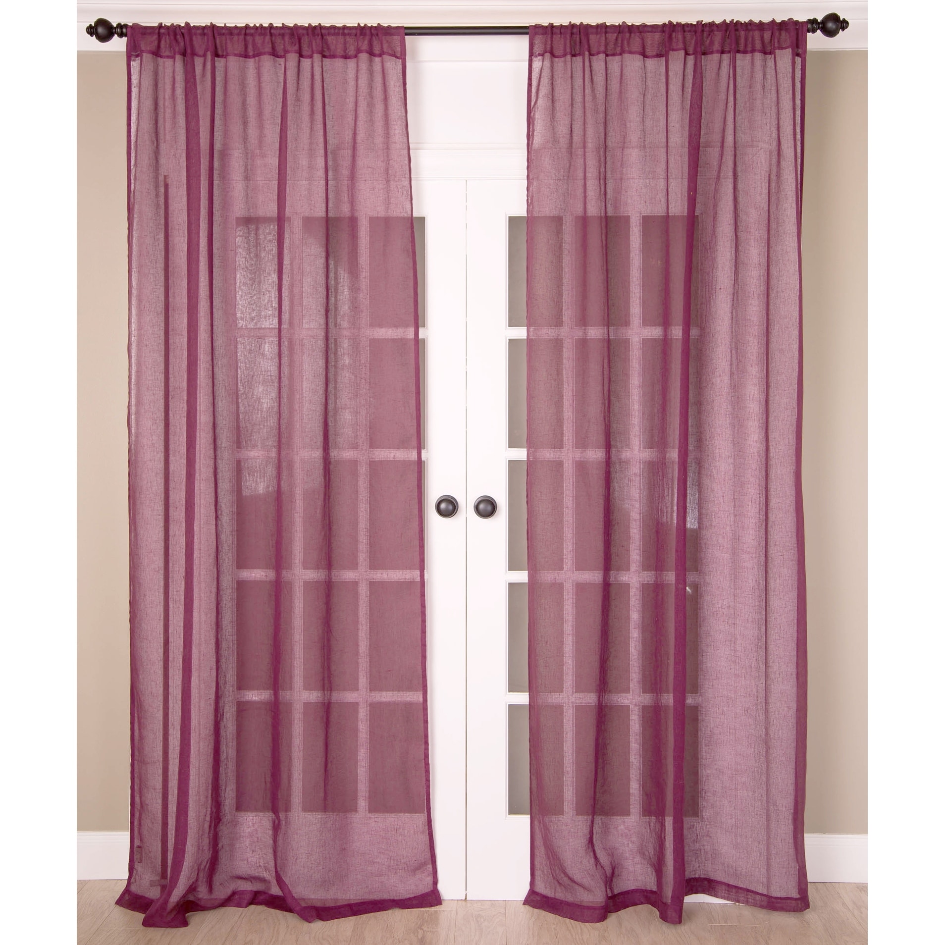 Violet Red 84-inch Rod Pocket Sheer Sari Curtain Panel (India) - Pair