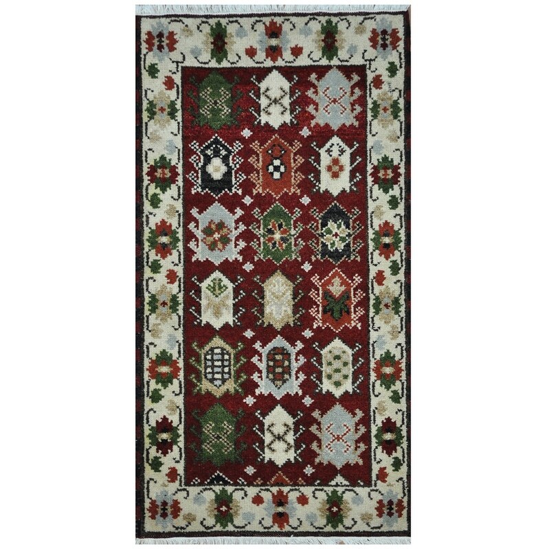 Handmade One-Of-A-Kind Tribal Kazak Wool Rug (India) - 2' x 4'