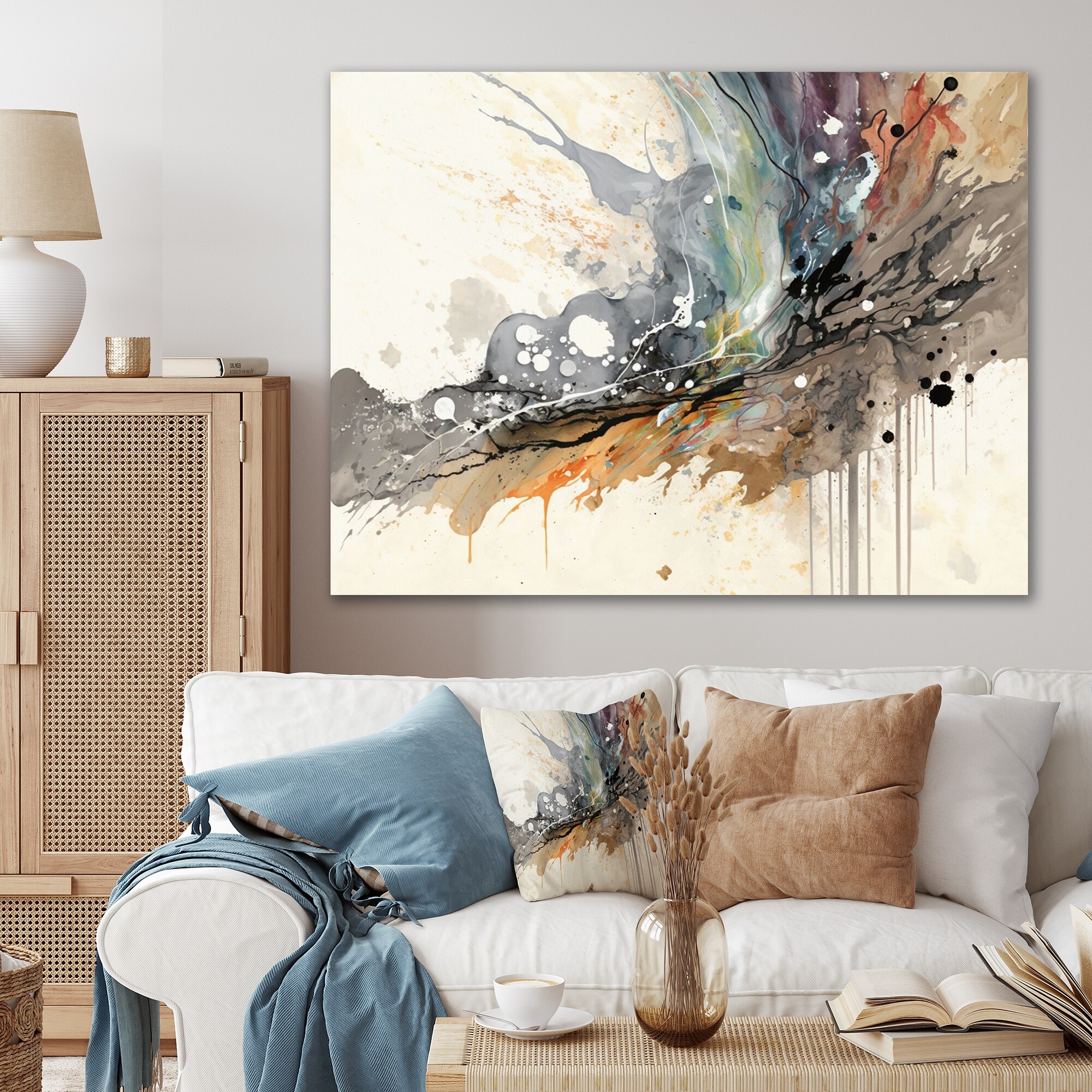 Designart "Jazz Rhythms in Shades of Gray I" Abstract Liquid Ink Canvas Wall Art Print