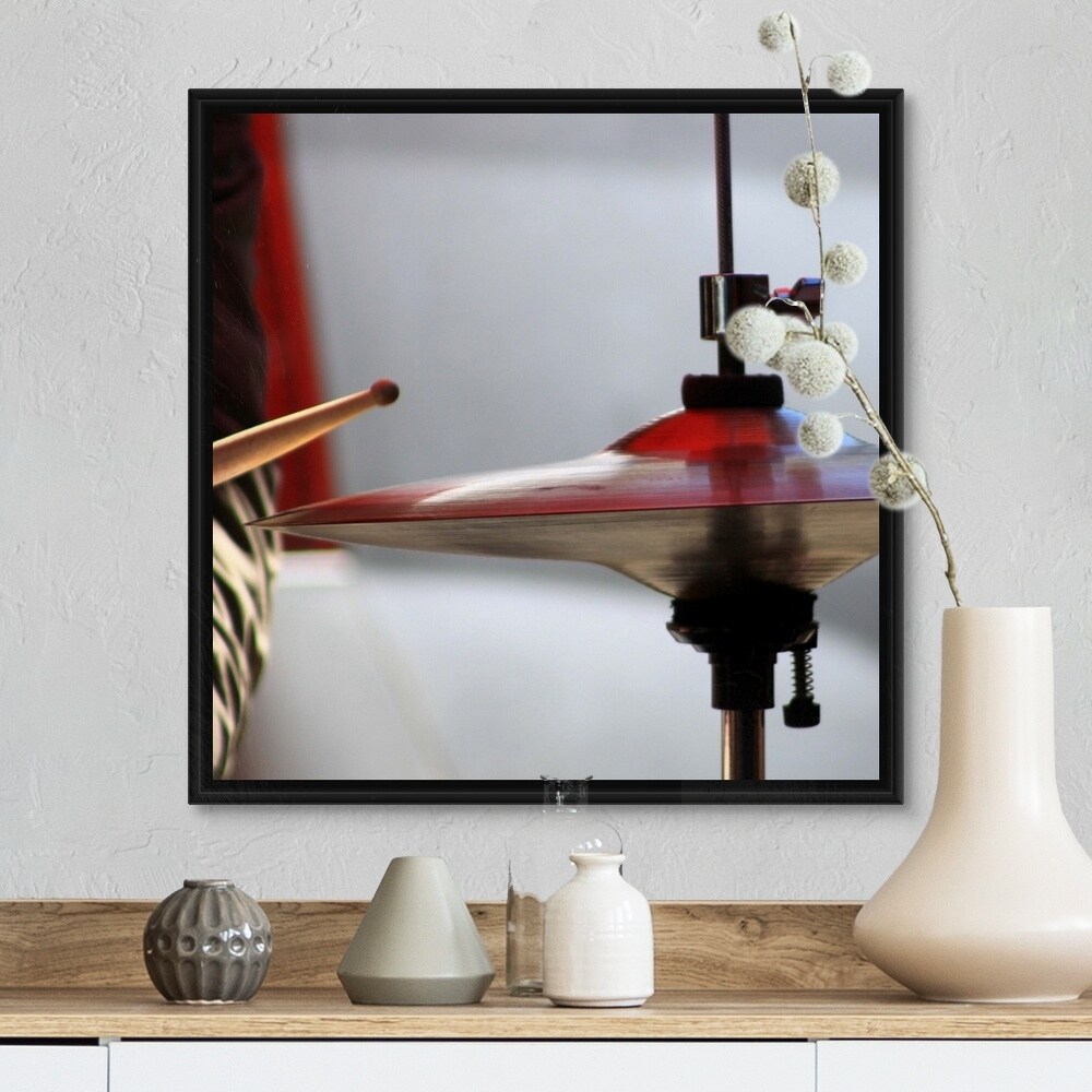 "Jazz drum player" Black Float Frame Canvas Art - Multi
