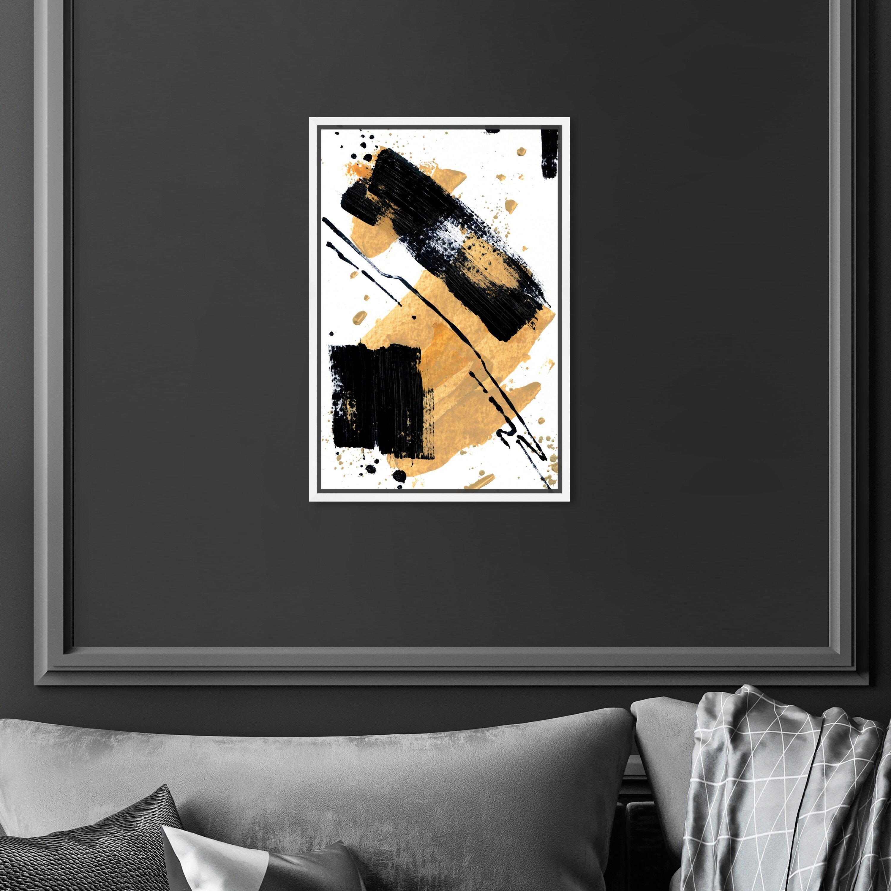 Oliver Gal 'Loving Jazz' Abstract Wall Art Framed Canvas Print Paint - Gold, Black