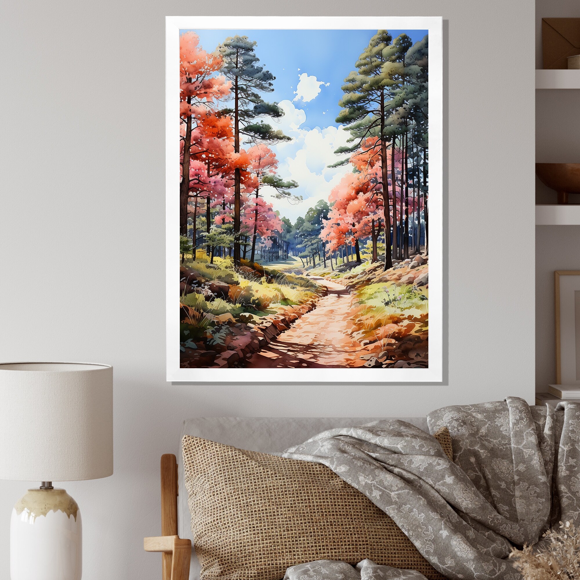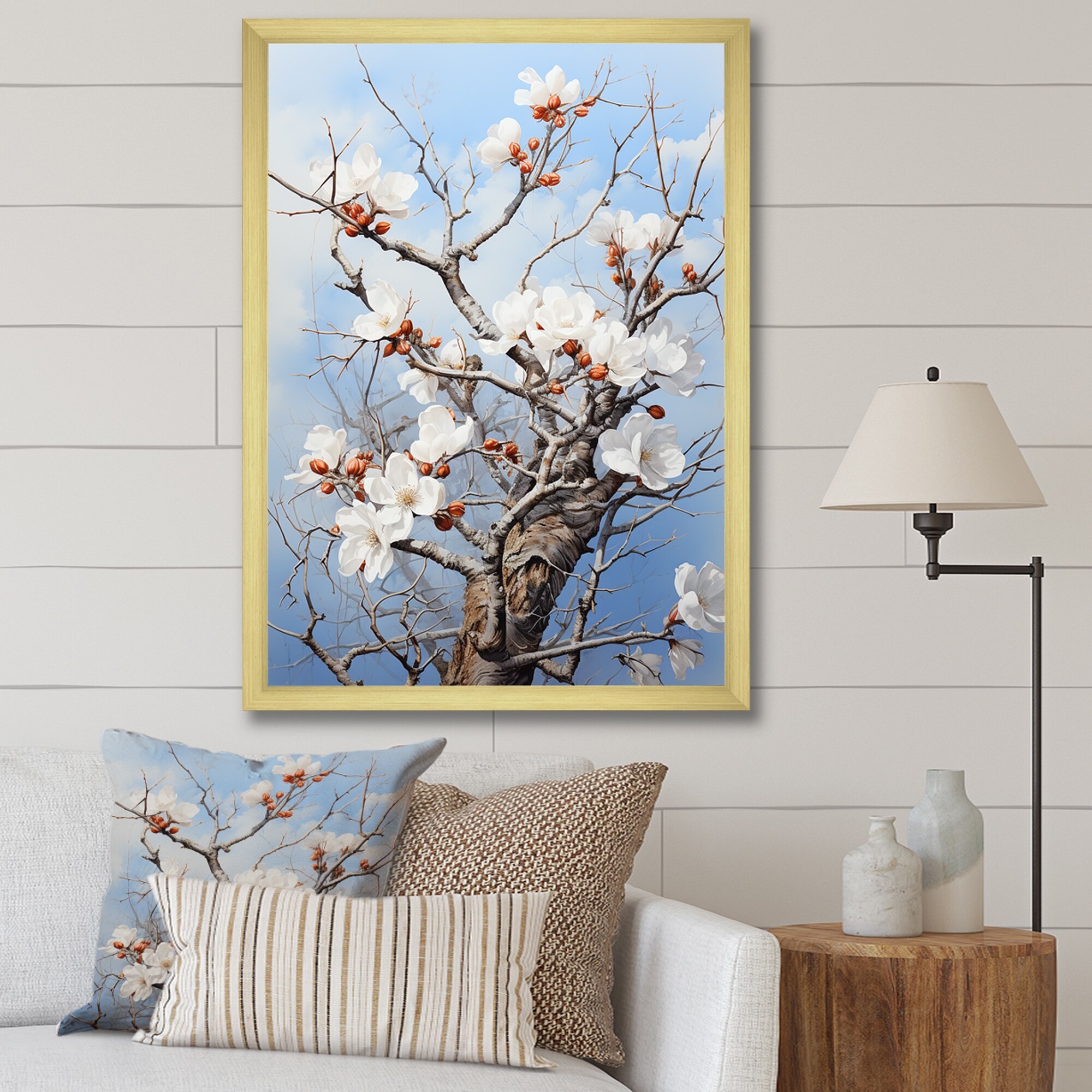 Designart "White Flowers Tree Shadow Dance" Landscape Trees Framed Canvas Art Print