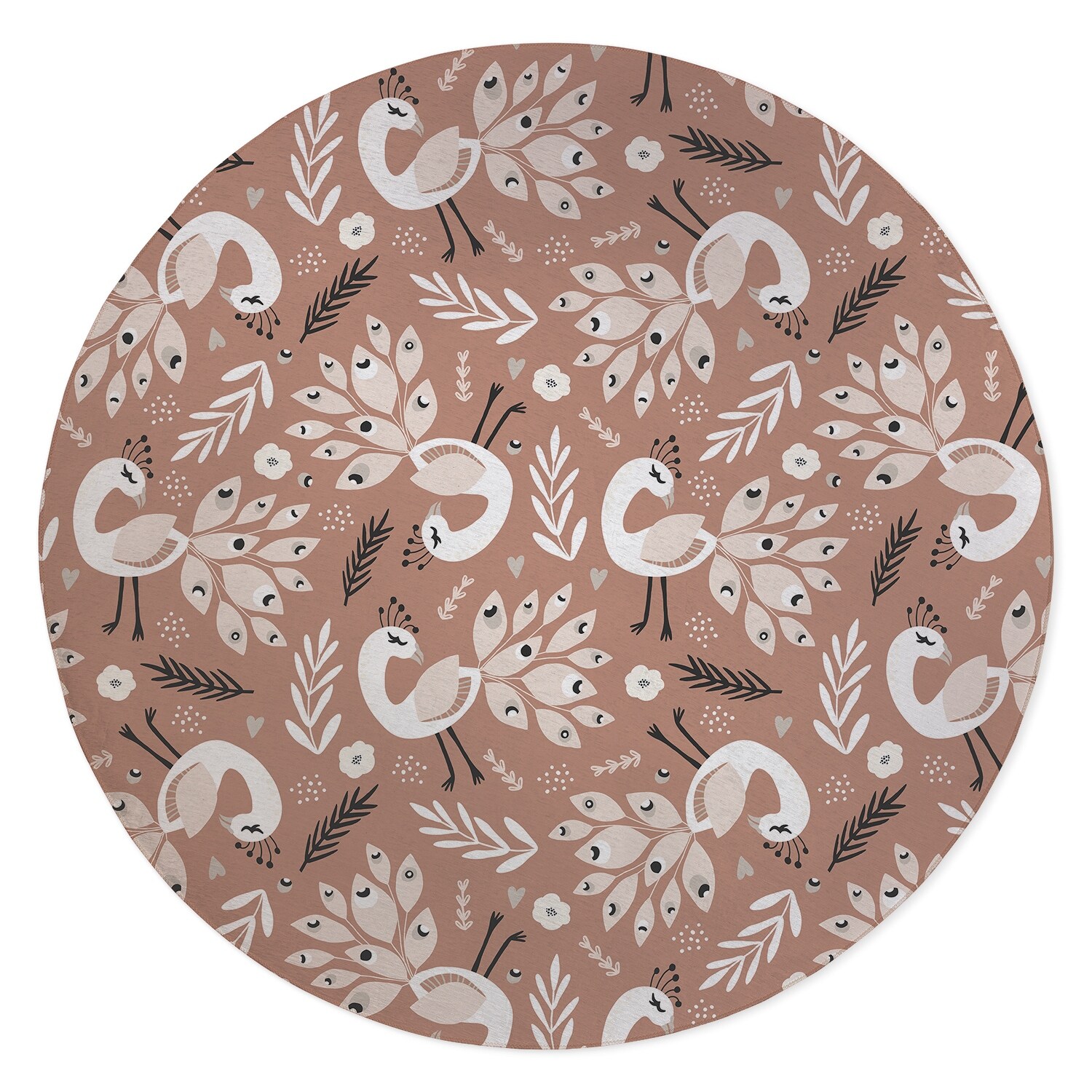 DANCING PEACOCKS in RUST Outdoor Rug By Terri Ellis