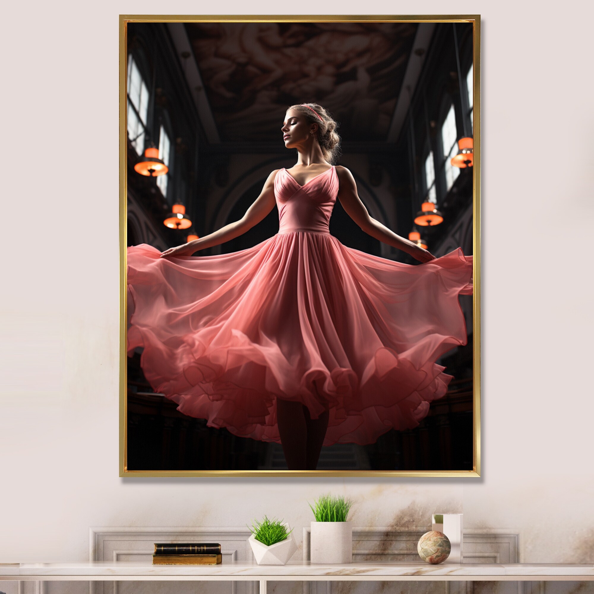 Designart "Peach Dance Quiet Ensemble II" Dance Framed Canvas Print