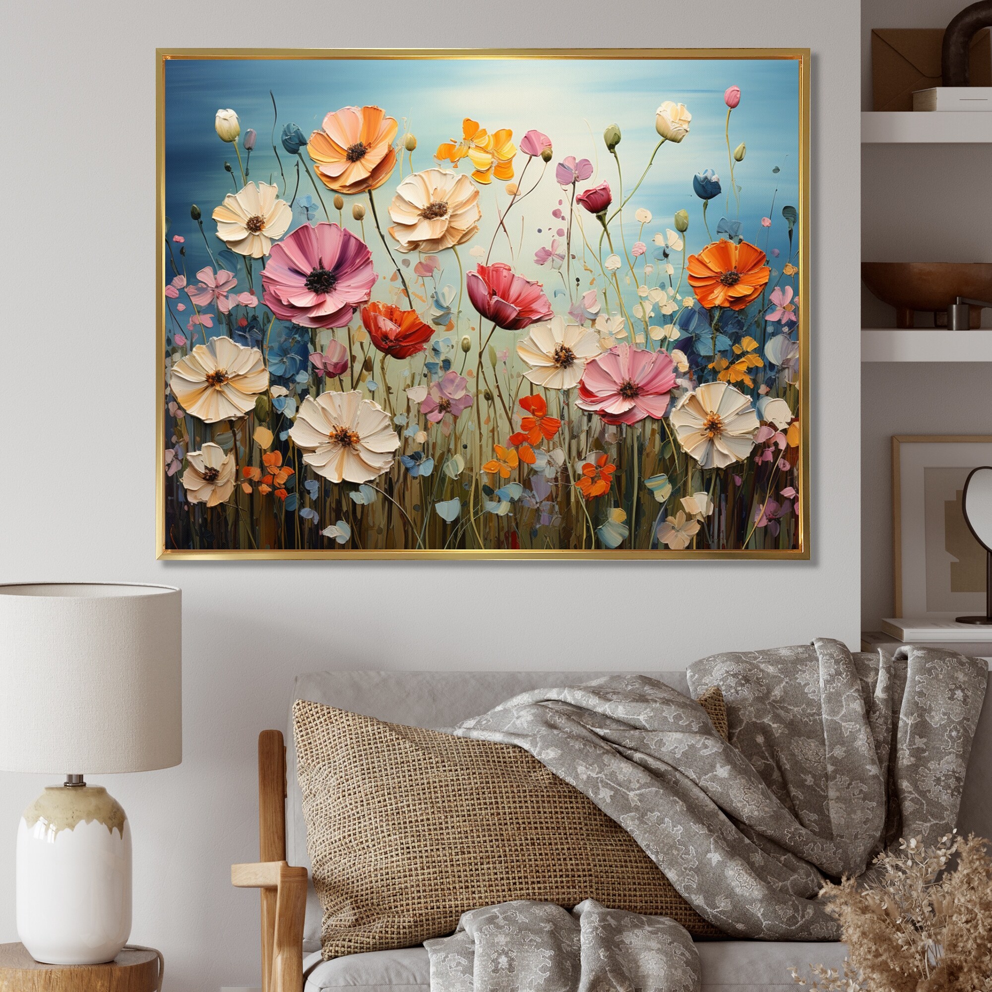 Designart "Abstract Wildflowers Dancing Petals" Wildflowers Framed Canvas Print