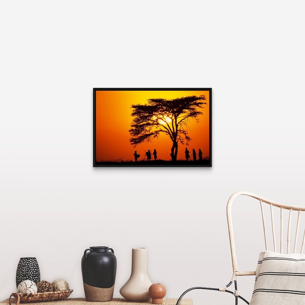 "Masai tribe silhouetted at dawn, Kenya" Black Float Frame Canvas Art
