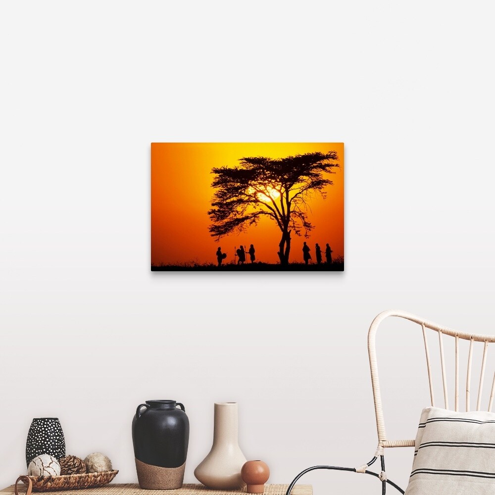 "Masai tribe silhouetted at dawn, Kenya" Canvas Wall Art