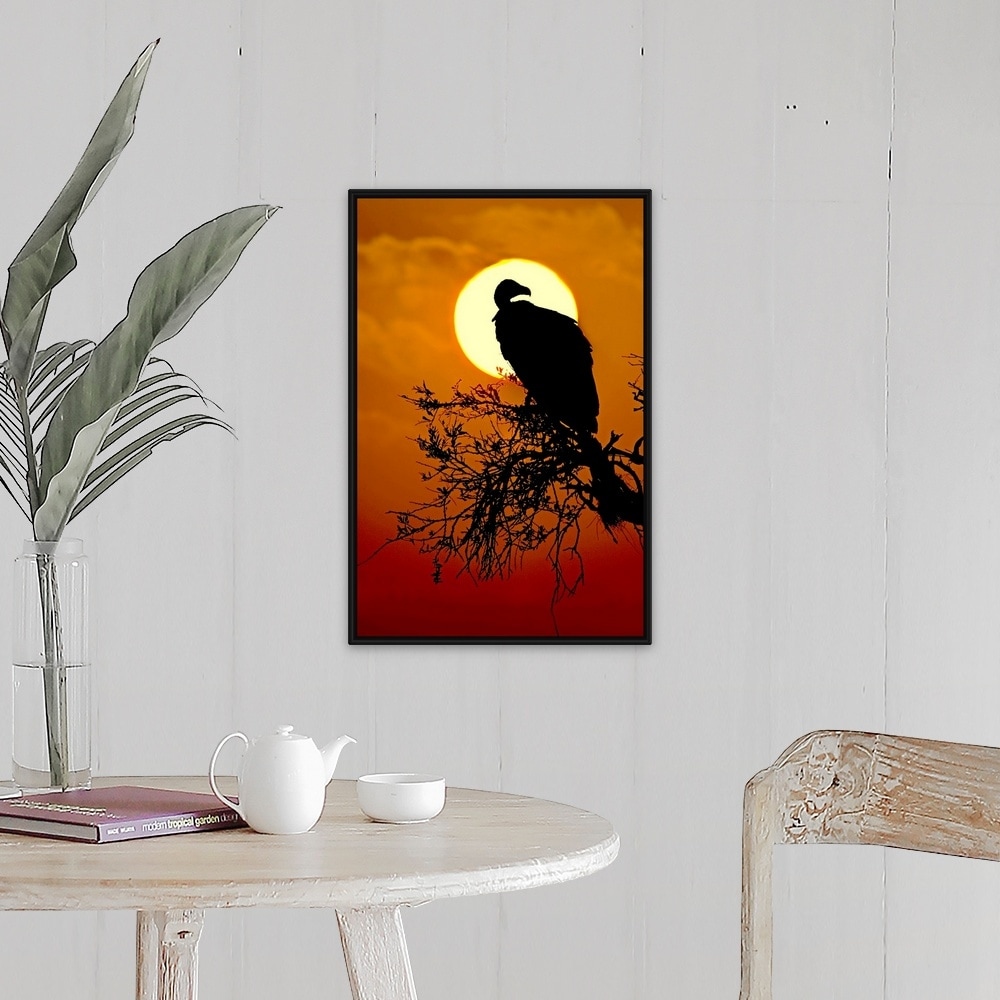 "Silhouette of a Vulture perching on a tree, Masai Mara National Reserve, Kenya" Black Float Frame Canvas Art