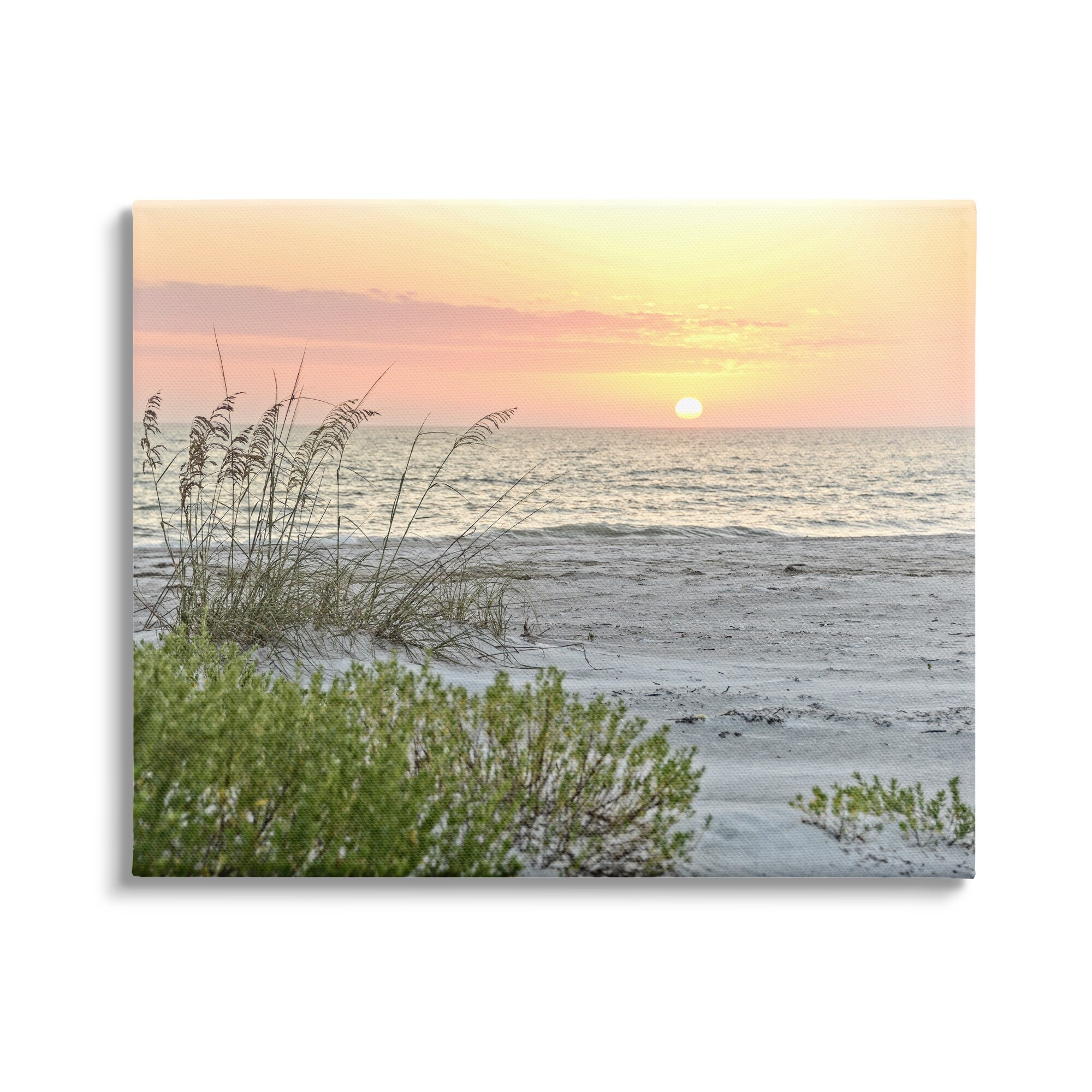 Stupell Industries Ocean Shore Reeds Sunset Horizon Stretched Canvas Wall Art, Design by Mary Lou Photography