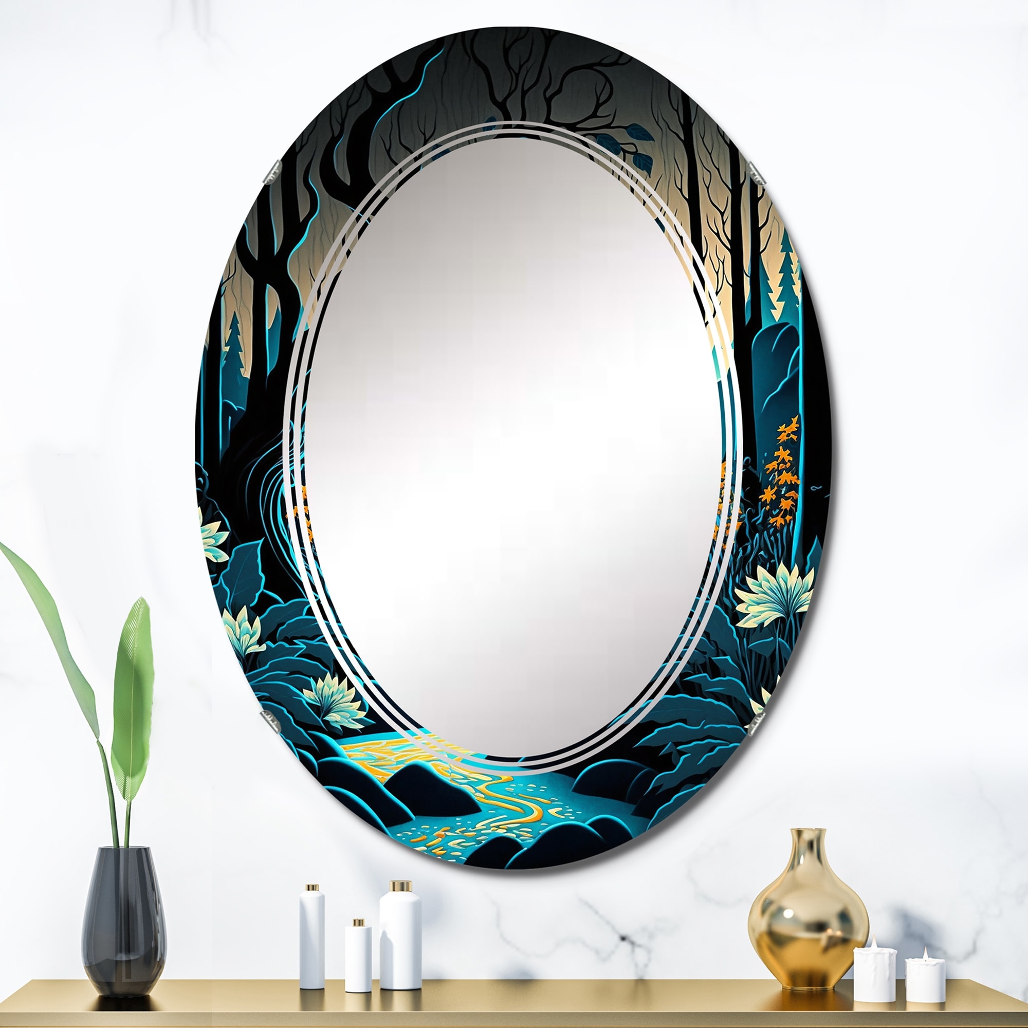 Designart 'Magical Night At the Lakehouse' Printed Landscape Cottage Lake Mountains Wall Mirror