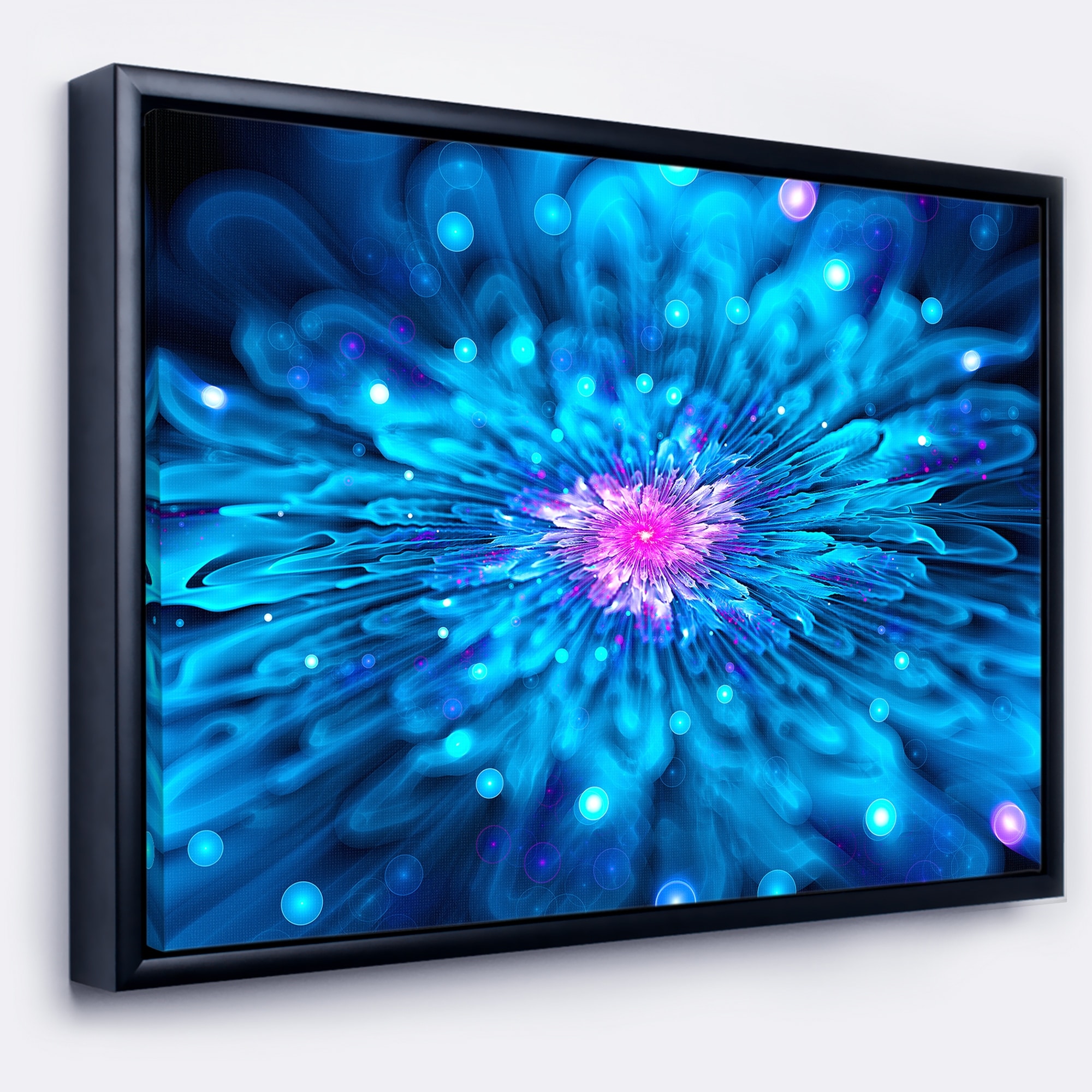 Designart "Magical Blue Glowing Flower" Floral Art Framed Canvas Print