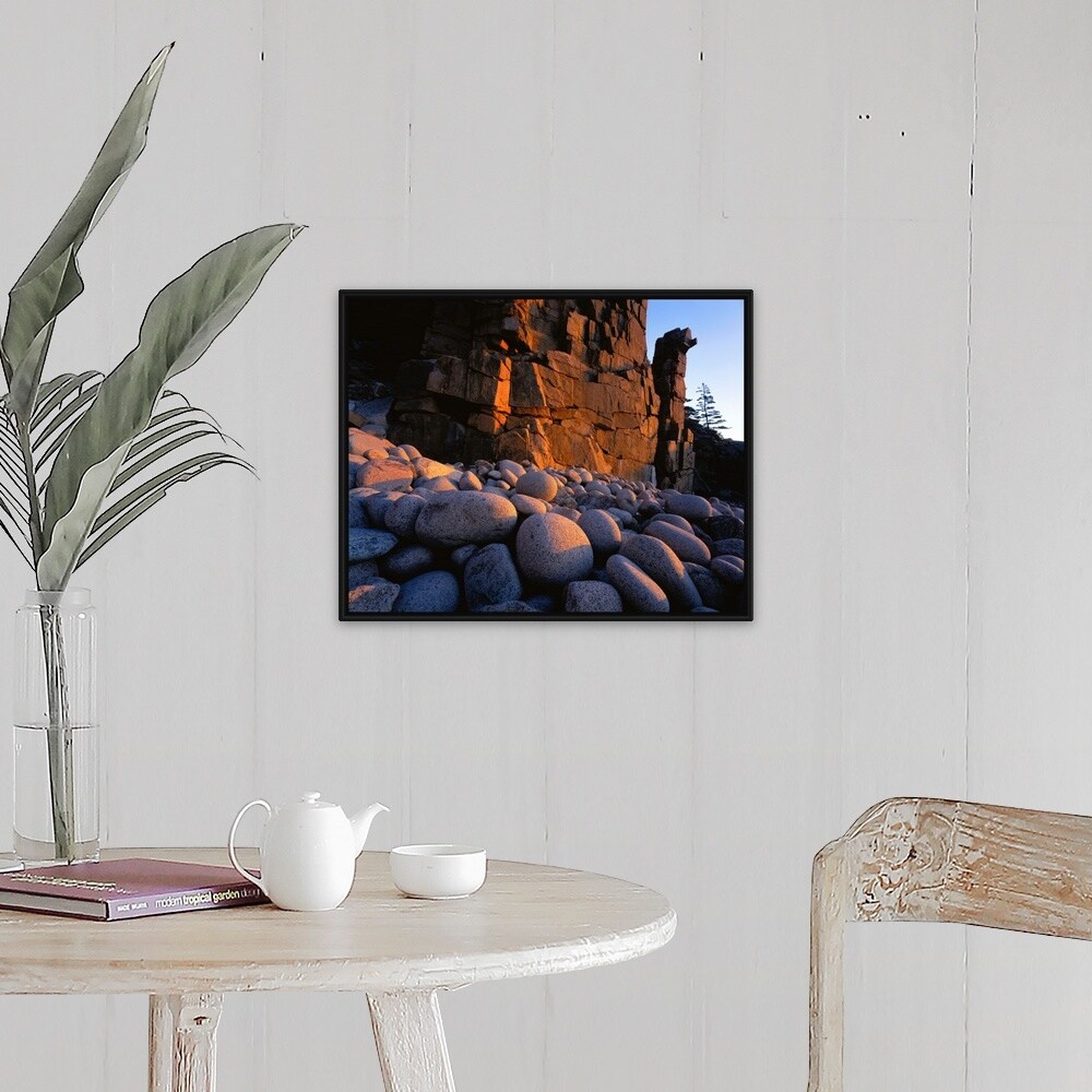 "Maine, Acadia National Park, Sunlight over the rocks" Black Float Frame Canvas Art