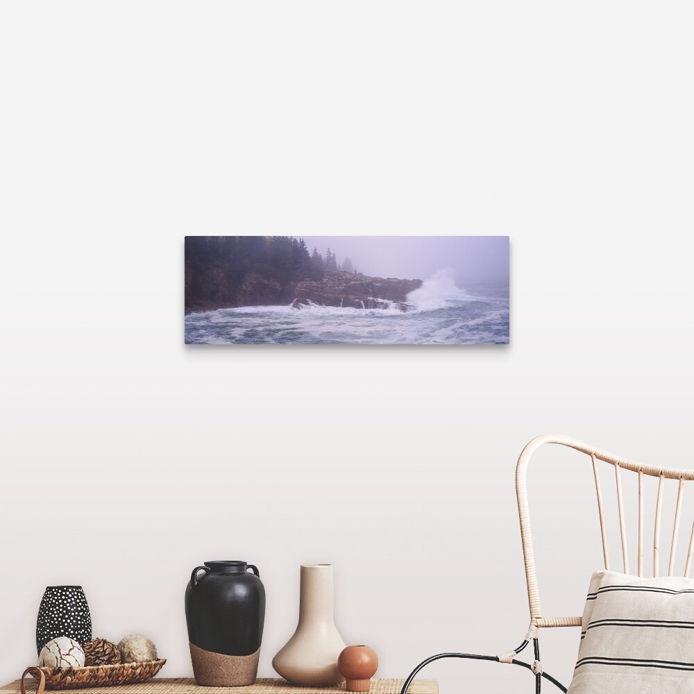 "Waves breaking against rocks, Monument Cove, Mount Desert Island, Acadia National Park, Maine" Canvas Wall Art