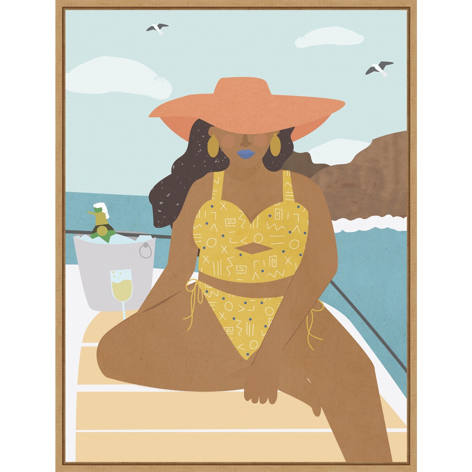 Lady on A Boat by Queenbe Monyei Canvas Art Framed - Sylvie Maple
