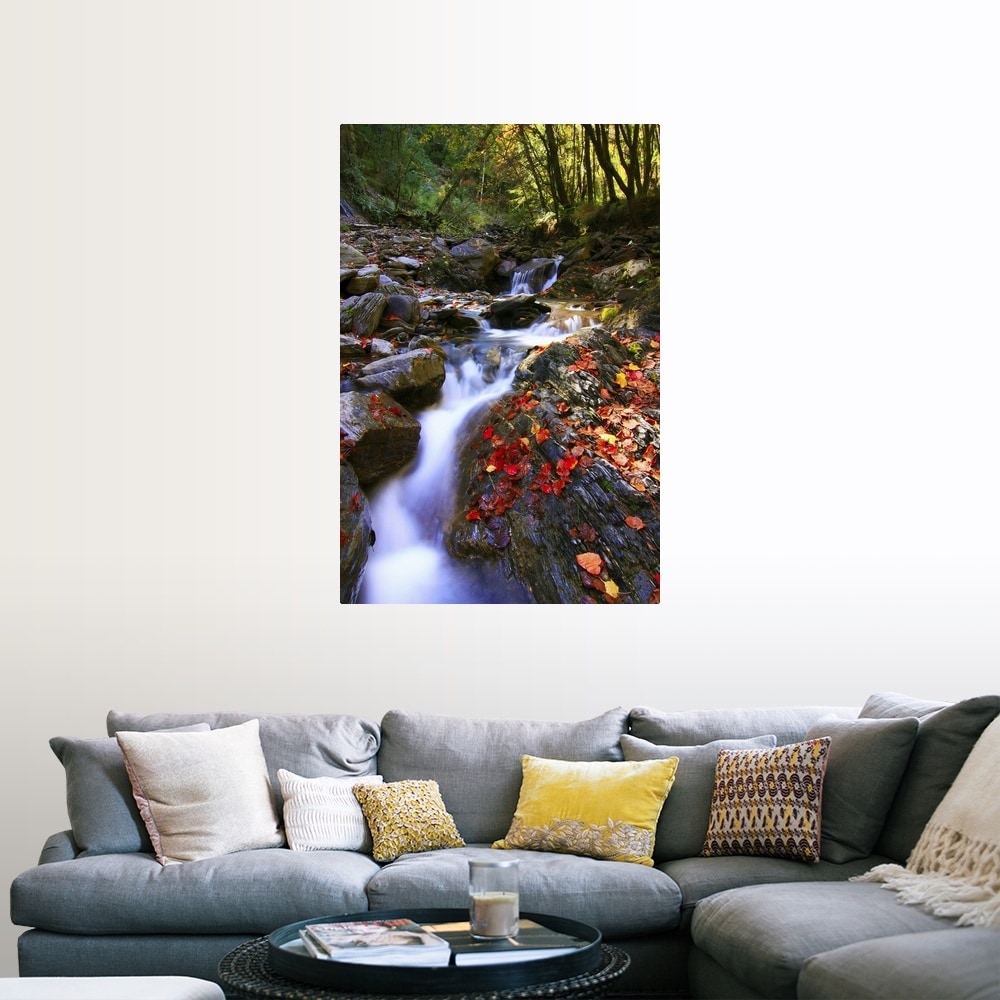 "Fallen Autumn Color Maple Tree Leaves on Wet Rock" Canvas Wall Art