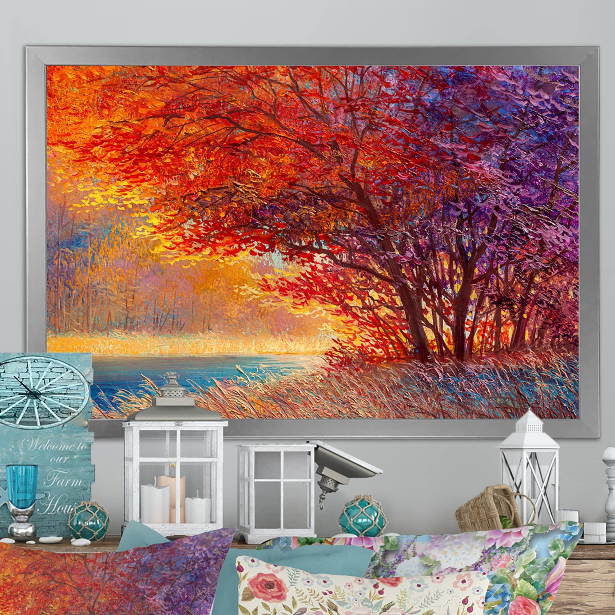Designart "Red Maple Lake Scenery" Traditional Framed Wall Decor