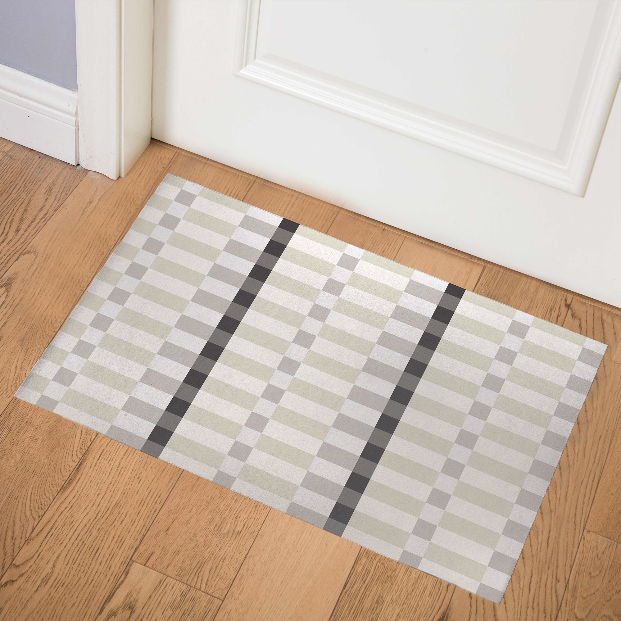 MODERN PLAID GREY AND CREAM Indoor Floor Mat By Kavka Designs