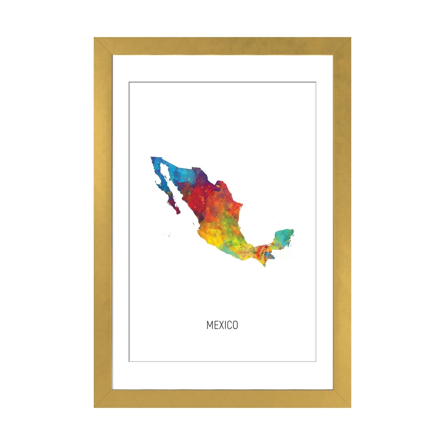 iCanvas "Mexico Map" by Michael Tompsett Framed