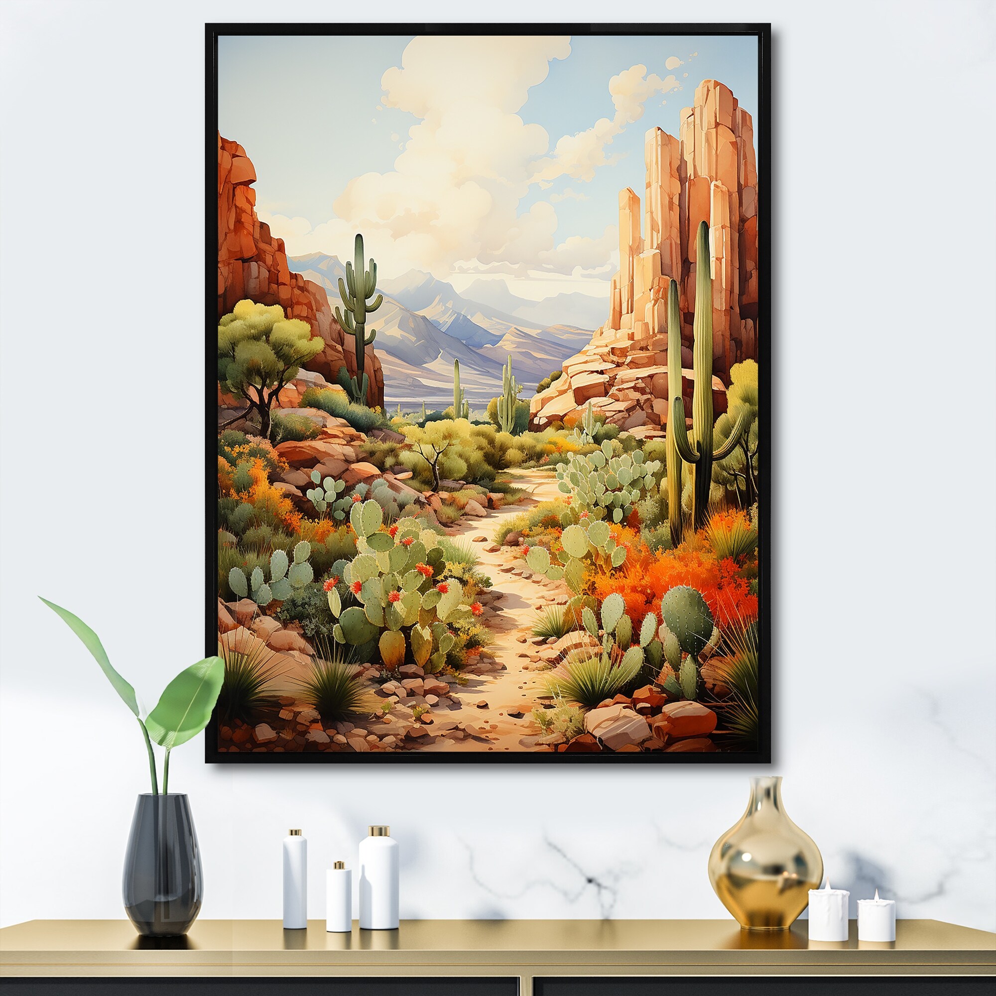 Designart "Mexico Cactus Oasis Impasto I" Mexico Framed Wall Decor