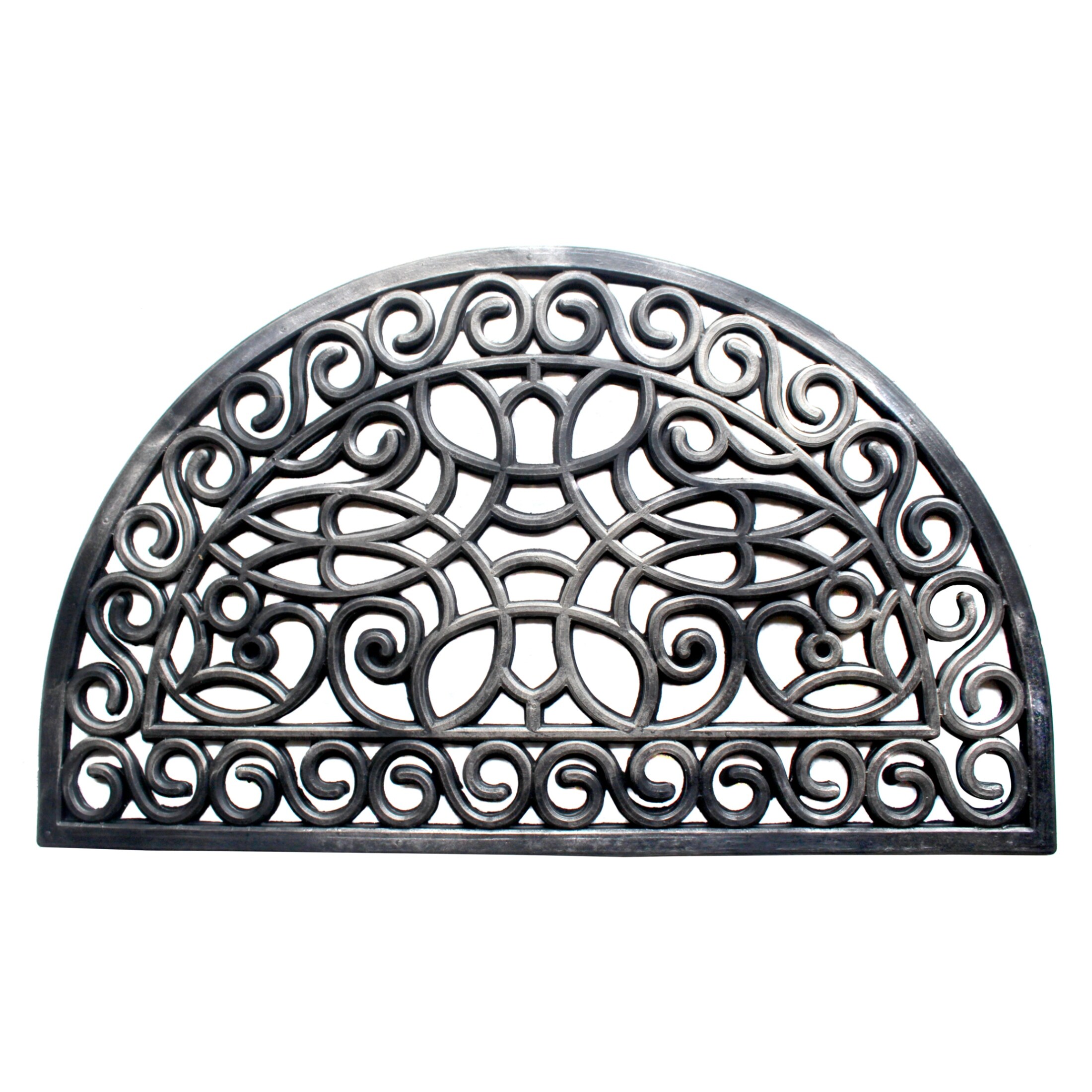 RugSmith Black Moulded Trellis Half-round Rubber Doormat, 18" x 30"