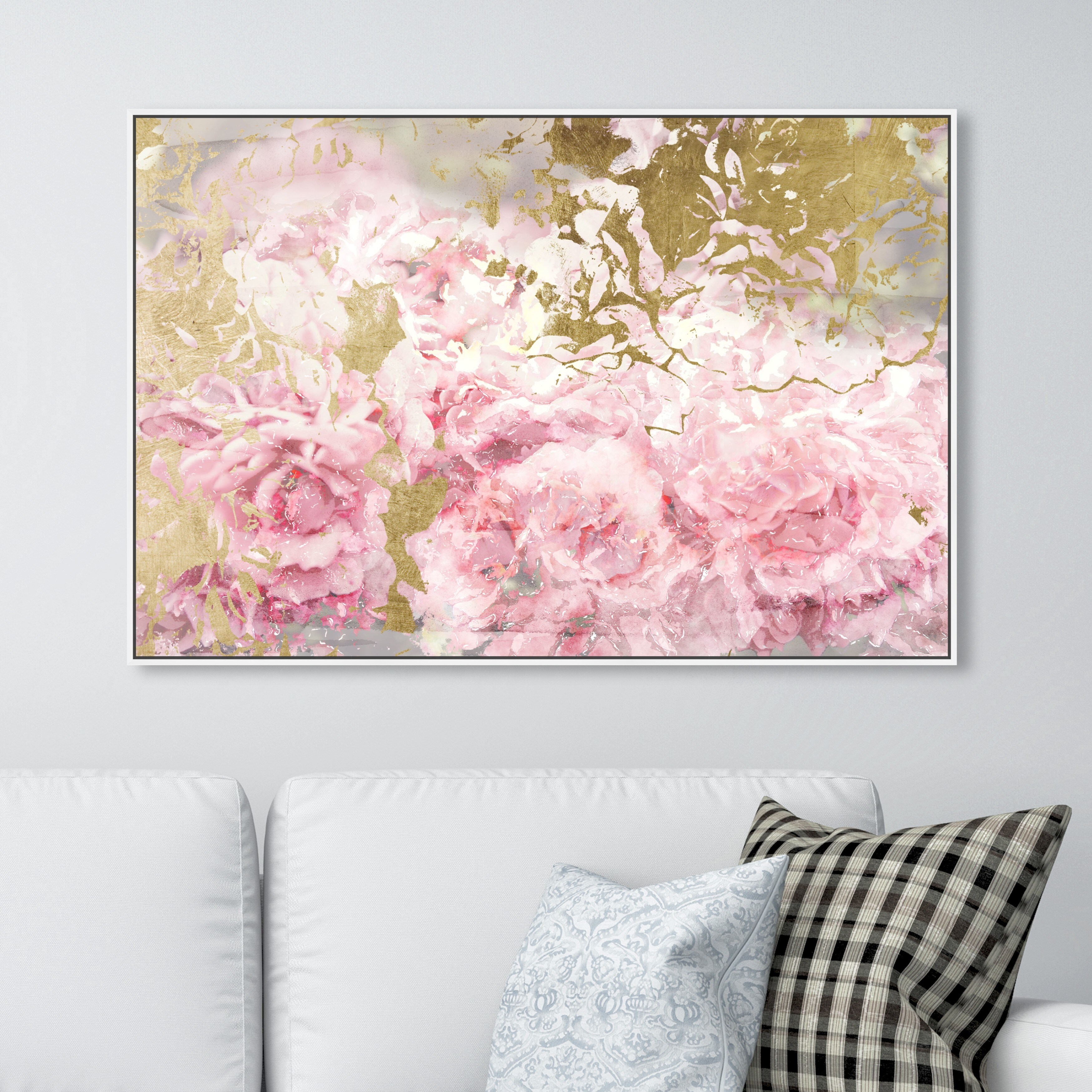 Oliver Gal 'Pink and Gold Camellias' Floral and Botanical Wall Art Framed Canvas Print Florals - Pink, Gold