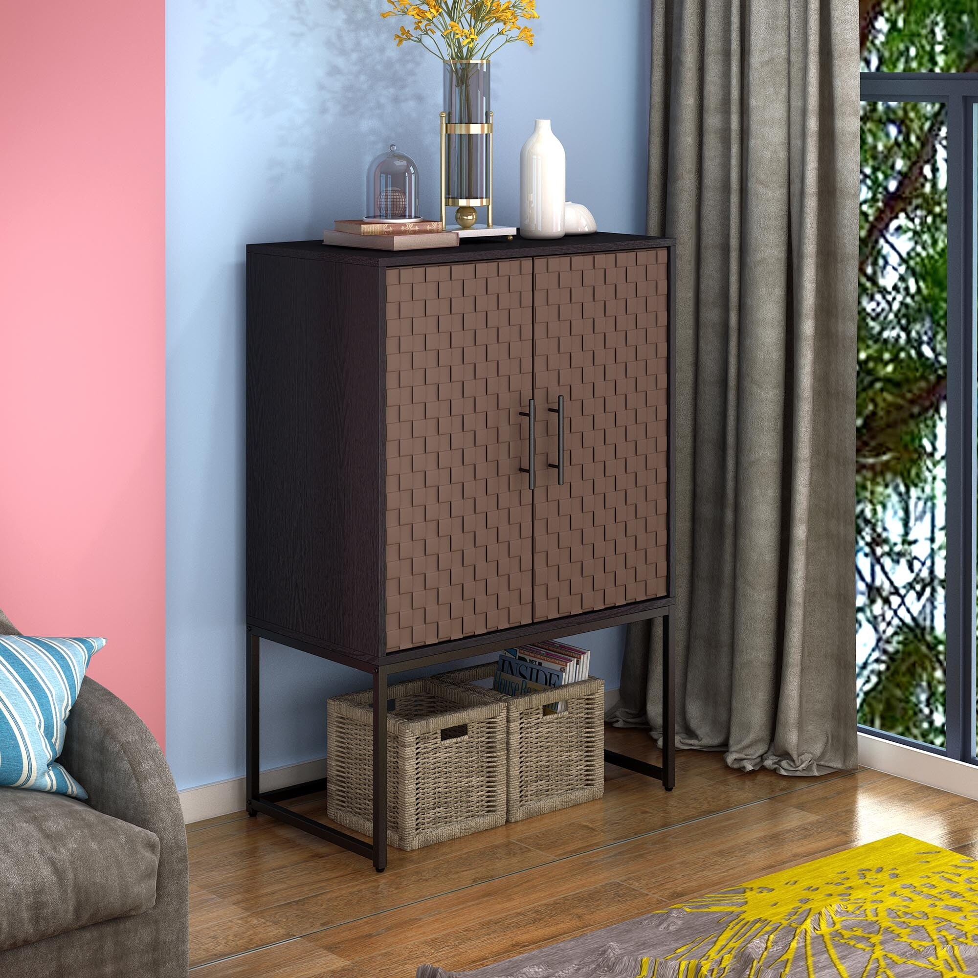 2 Door High Storage Cabinet with Metal Base