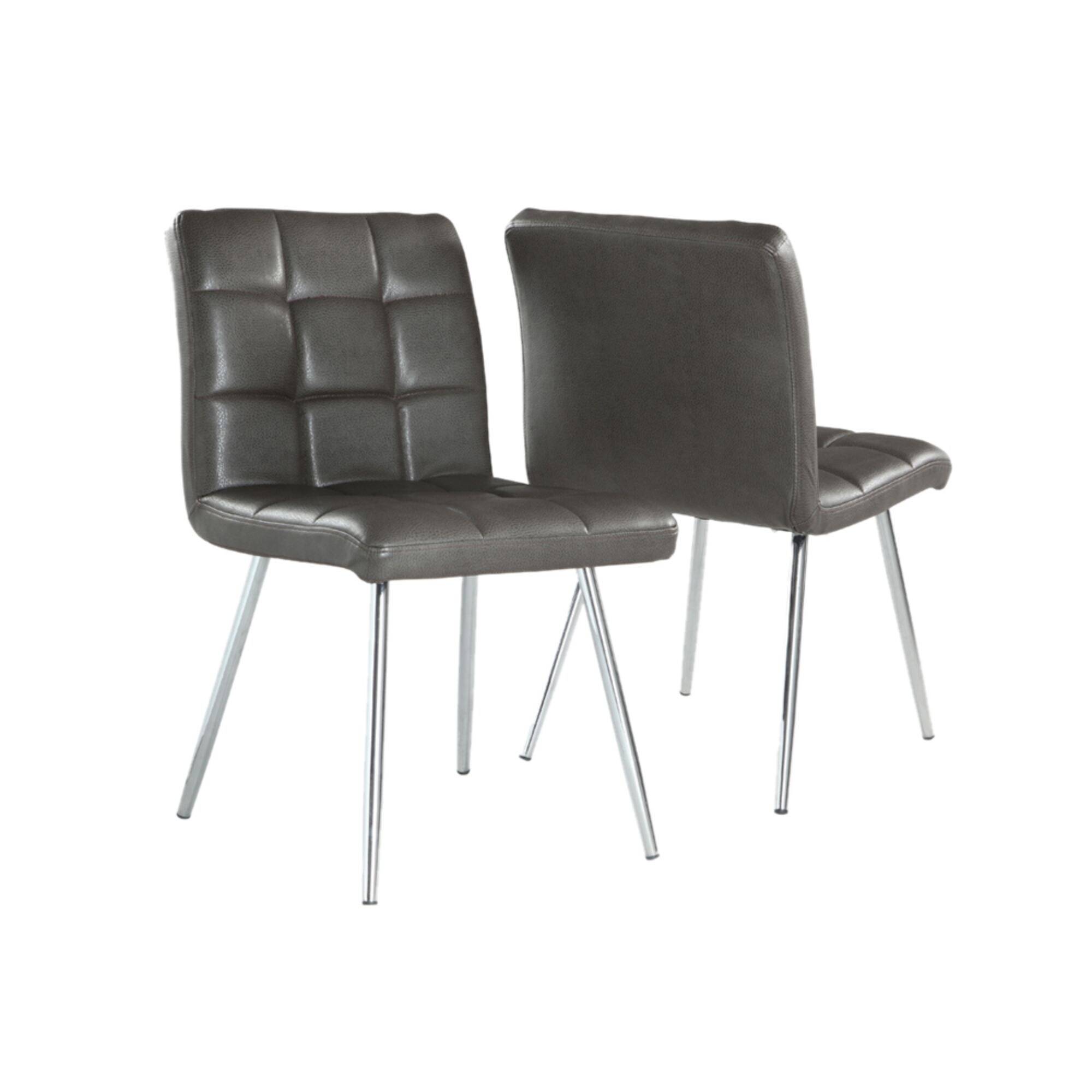 Offex 2 Piece Contemporary Dining Chair 32"H - Grey Leather Look - Chrome