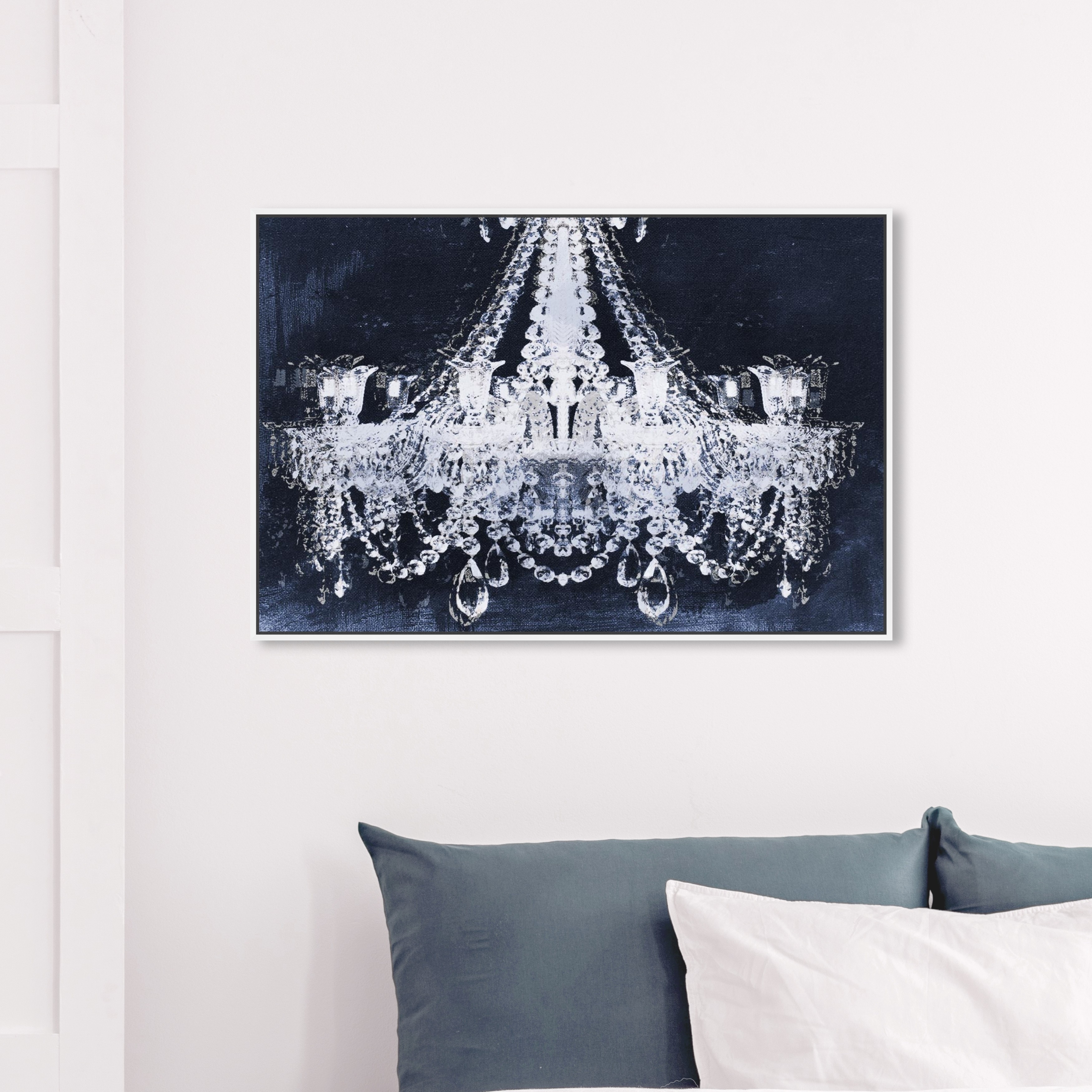 Oliver Gal 'Dramatic Entrance Indigo' Fashion and Glam Wall Art Framed Canvas Print Chandeliers - Blue, White